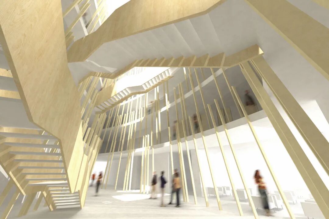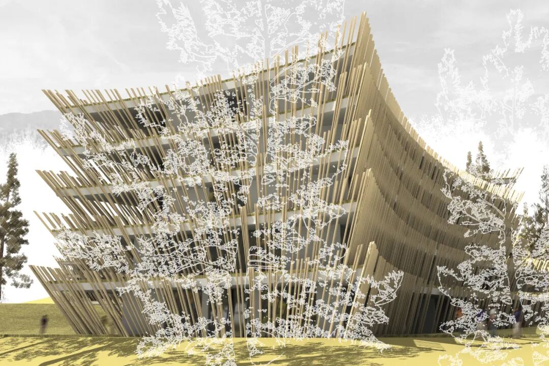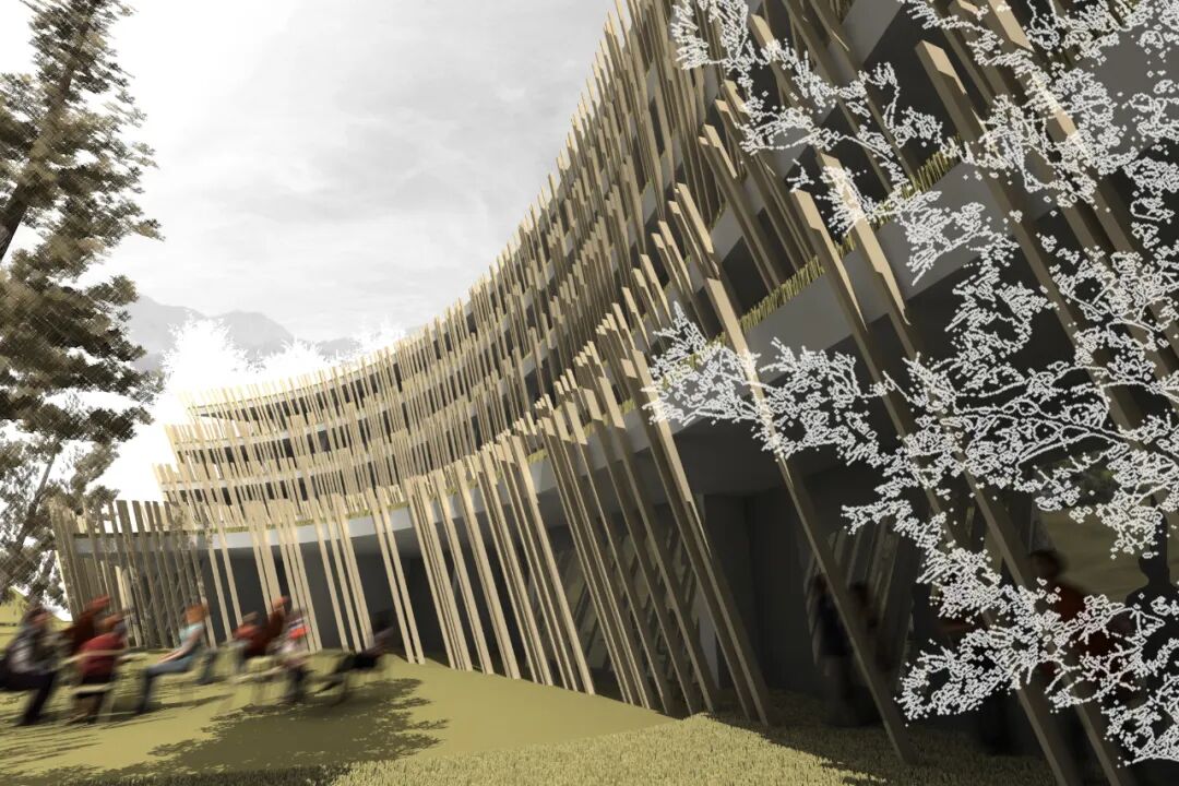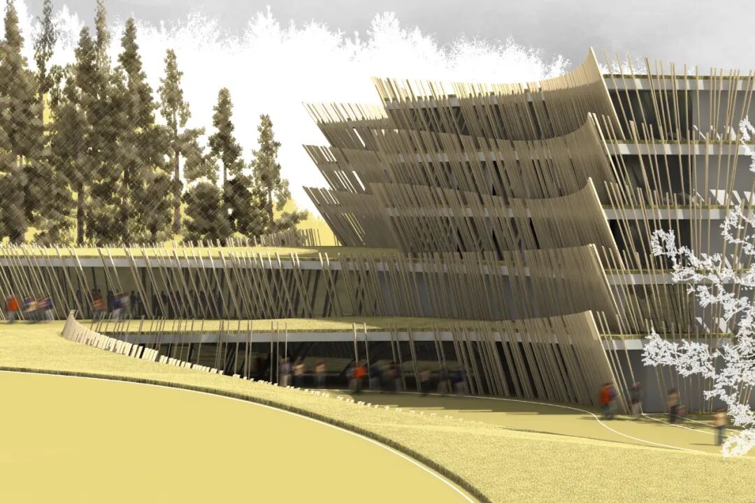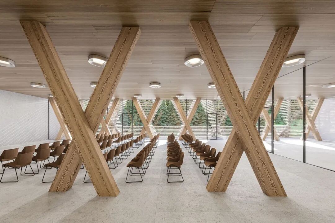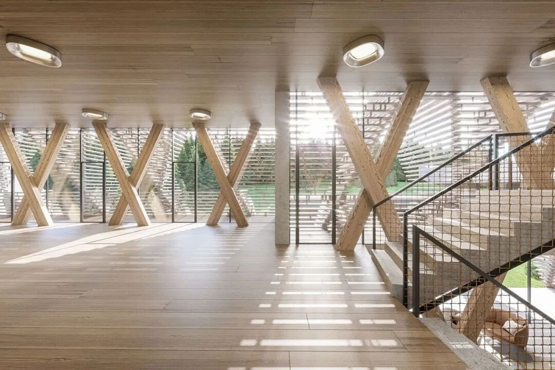 因此,新增加的建筑部分并没有参考现有建筑,而是参考了周围的森林和传统农村的发展。