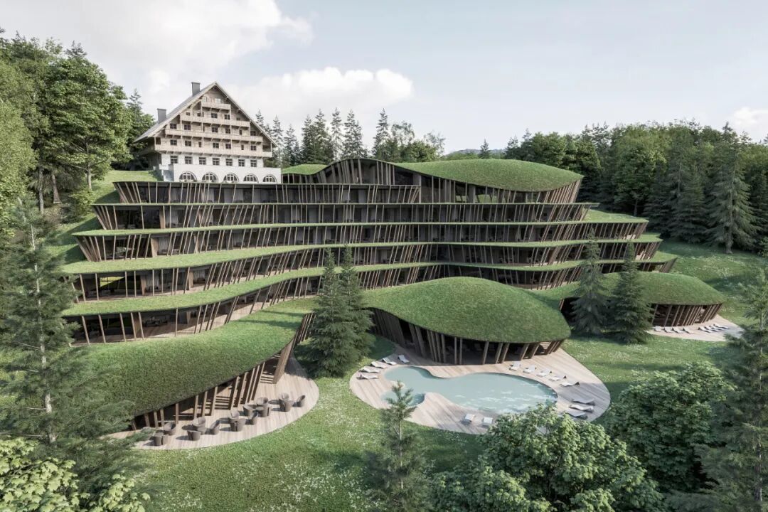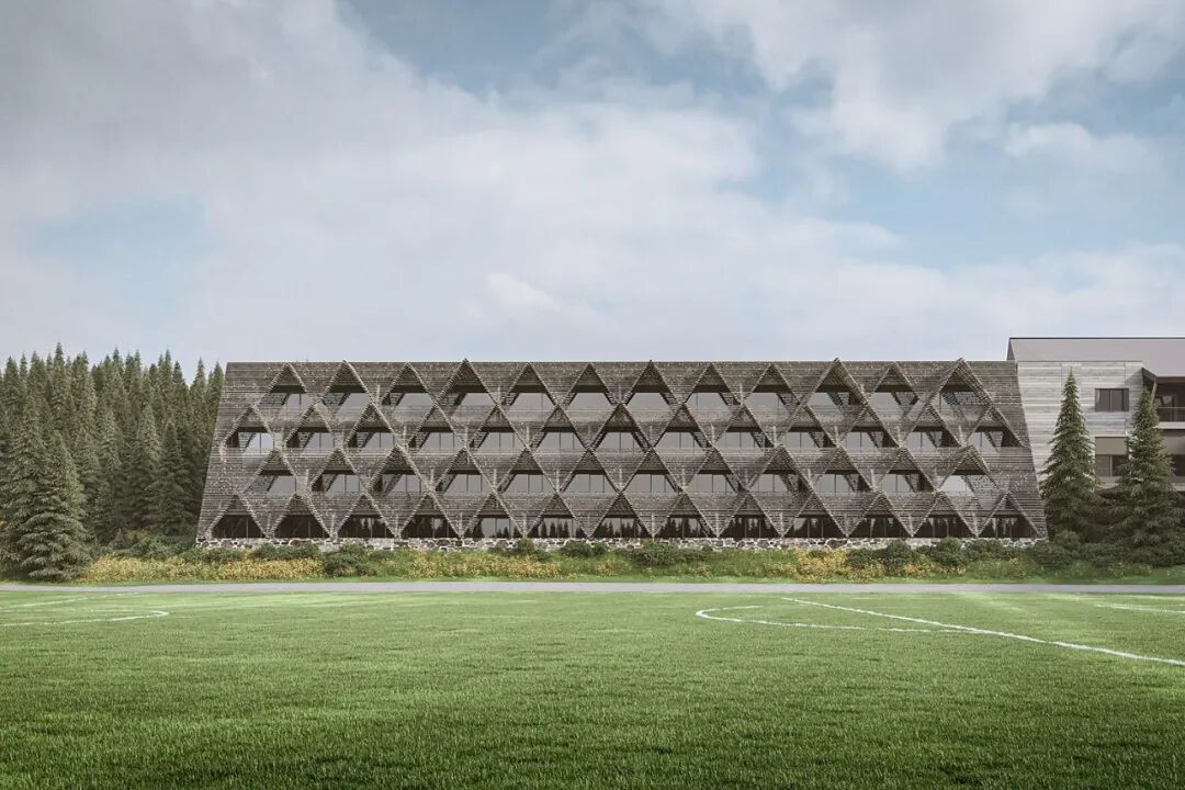 该酒店位于中欧南部,毗邻阿尔卑斯山,是进入Rogla旅游胜地首先看到的酒店之一,属于Hotel Natura的扩建项目,如何在一个扩建项目中置入半数体量的酒店需求,是该项目面临的最大挑战;