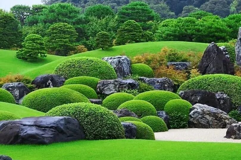 就连这个被赞为“日本最美的庭园”的足立美术馆园林中,球类植物圆圆的形态,使极致简单的日式景观也变得可爱了。