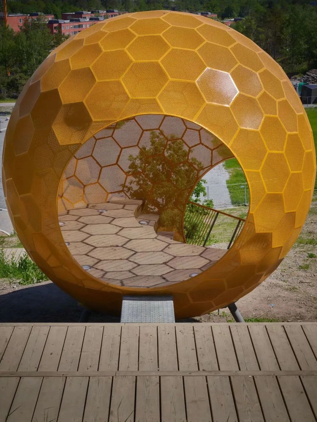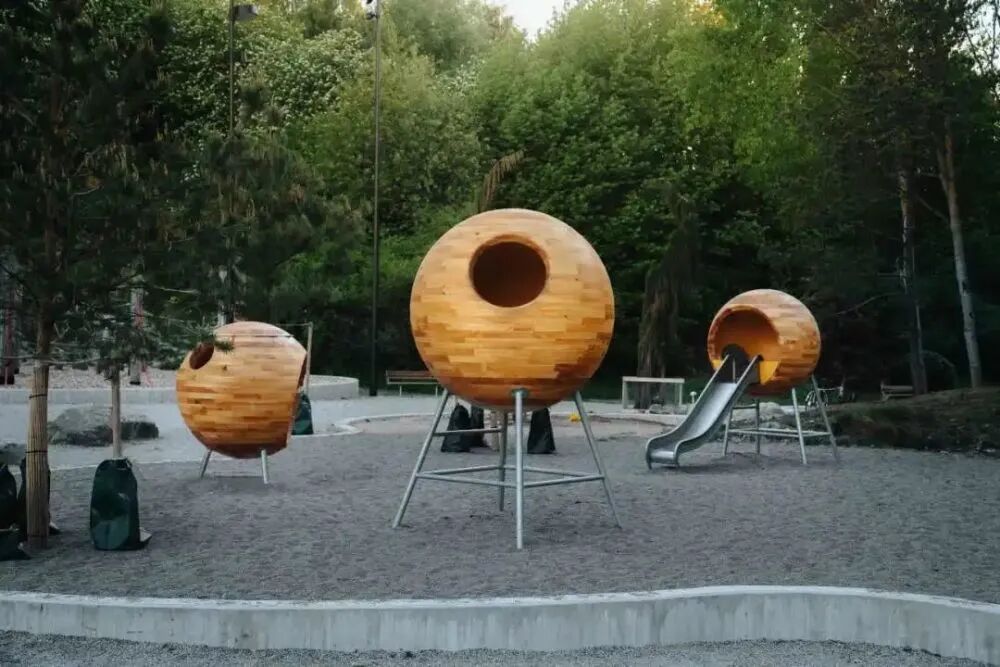 位于斯德哥尔摩的vårbergstoppen公园设有一系列供小朋友们玩耍、攀爬和躲藏的球体游乐设施。