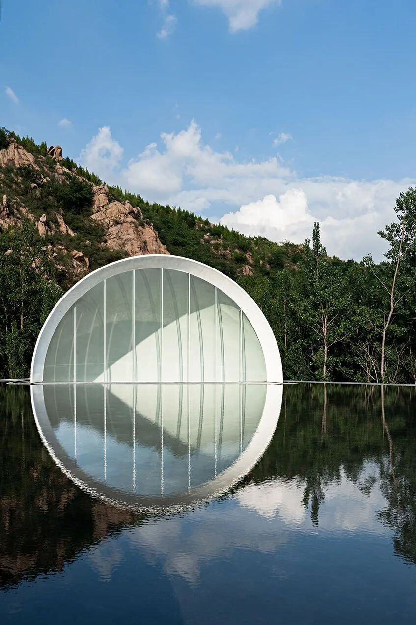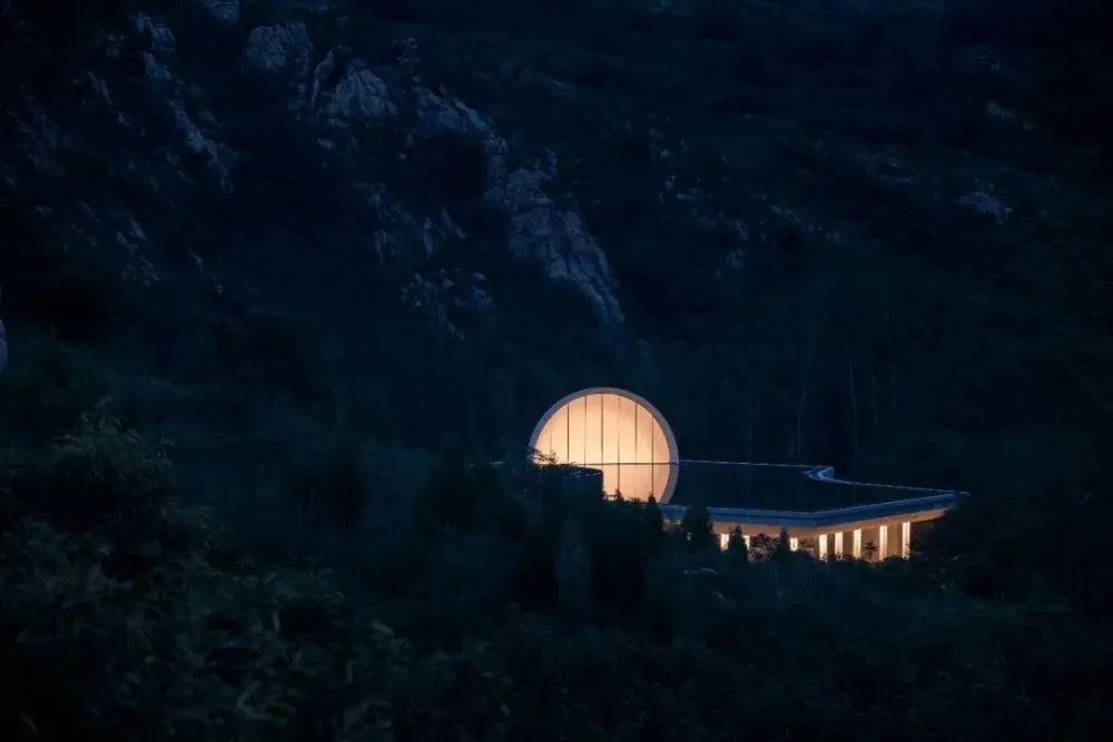 在泰安九女峰山脚,坐落着一座奇妙的仪式堂“故乡的月”,一个灵感来源于拈花湾“气球月亮”的“满月”建筑。