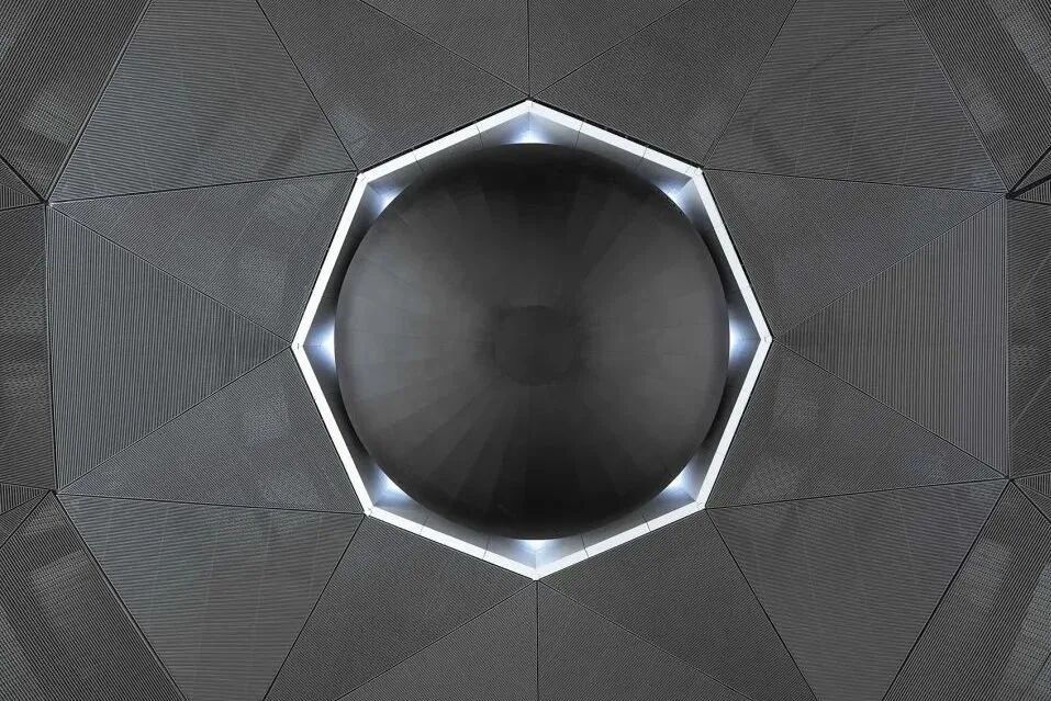 这是一座象征着天体运行理念的天文馆。整座天文馆由三大建筑主体组成,圆洞天窗、倒转穹顶和天象厅球体,共同诠释着天体(太阳、月亮和星星)运行的基本规律。