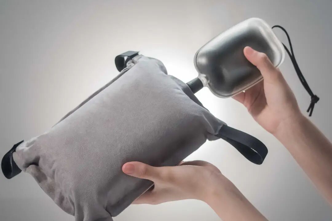 转动瑜伽砖上的旋钮会自动给它们充气,充气后的 HyperMat 创造一个不稳定的表面,有助于训练用户的稳定性和核心力量,并增加徒手训练的强度;也可以堆叠成不同的高度以帮助锻炼。肩带还配有一个训练设备手动泵,可用于泵送额外的空气以增加锻炼强度。