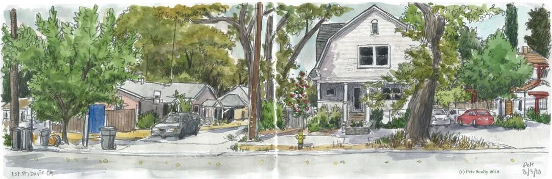 通过自己的画笔去记录生活可能不如照相来的效率高,但画面会保留你此时此刻的所思所想,所以比相片更加有温度。