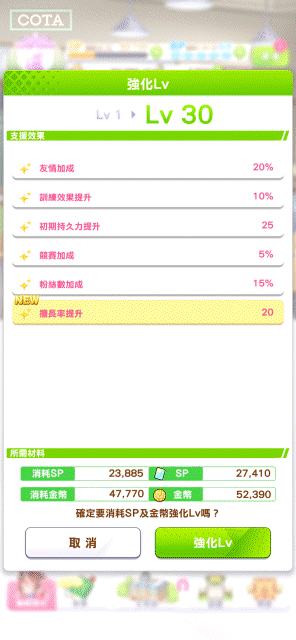 我们可以从《赛马娘》的界面示例中进行横向和纵向对比来理解这一问题: