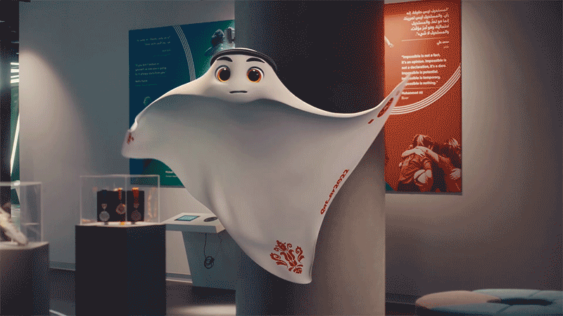 以曲面为主要构成元素的La'eeb不仅凭借丰富的文化内涵和可爱的造型从历届世界杯吉祥物中脱颖而出,还能依托灵活的曲面身体做出多种生动可爱的动作。