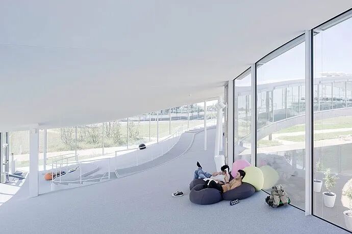 公共区域对应的屋顶曲率起伏跌宕,包裹出富于变化的内部空间。