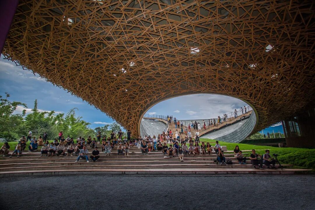 充分发掘竹结构复合增强的潜力,独创性地提出了弦支竹梁+边拱的复合构型,大大减少了结构落地的数量,实现了轻盈而连续的曲面覆盖。