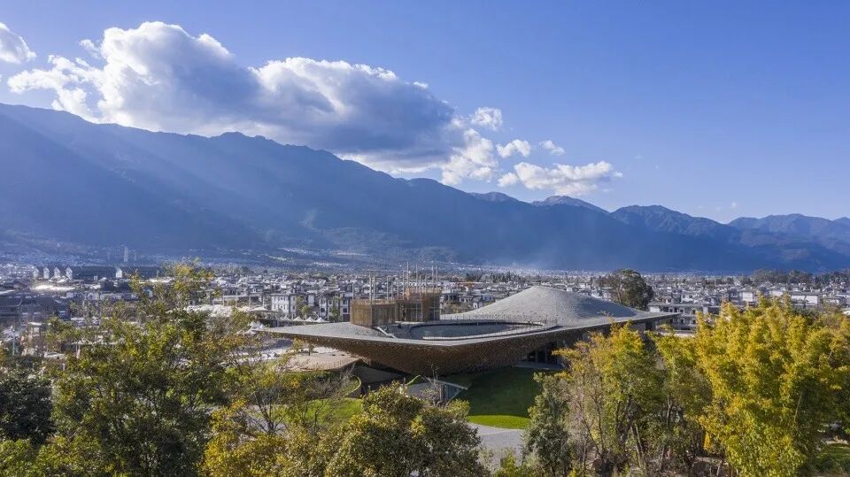 建筑轻柔漂浮的屋顶受到了当地自然的启发,宛若苍山映于洱海的倒影,呼应着周围连绵的地形,吸引着游客的来访。