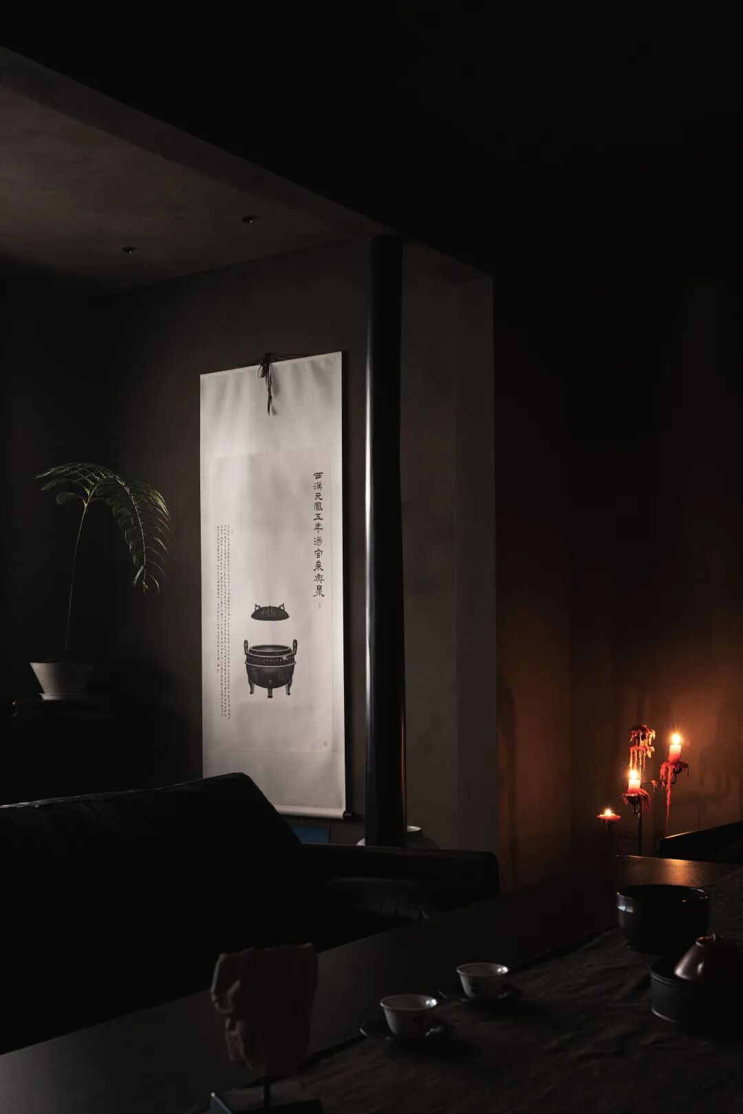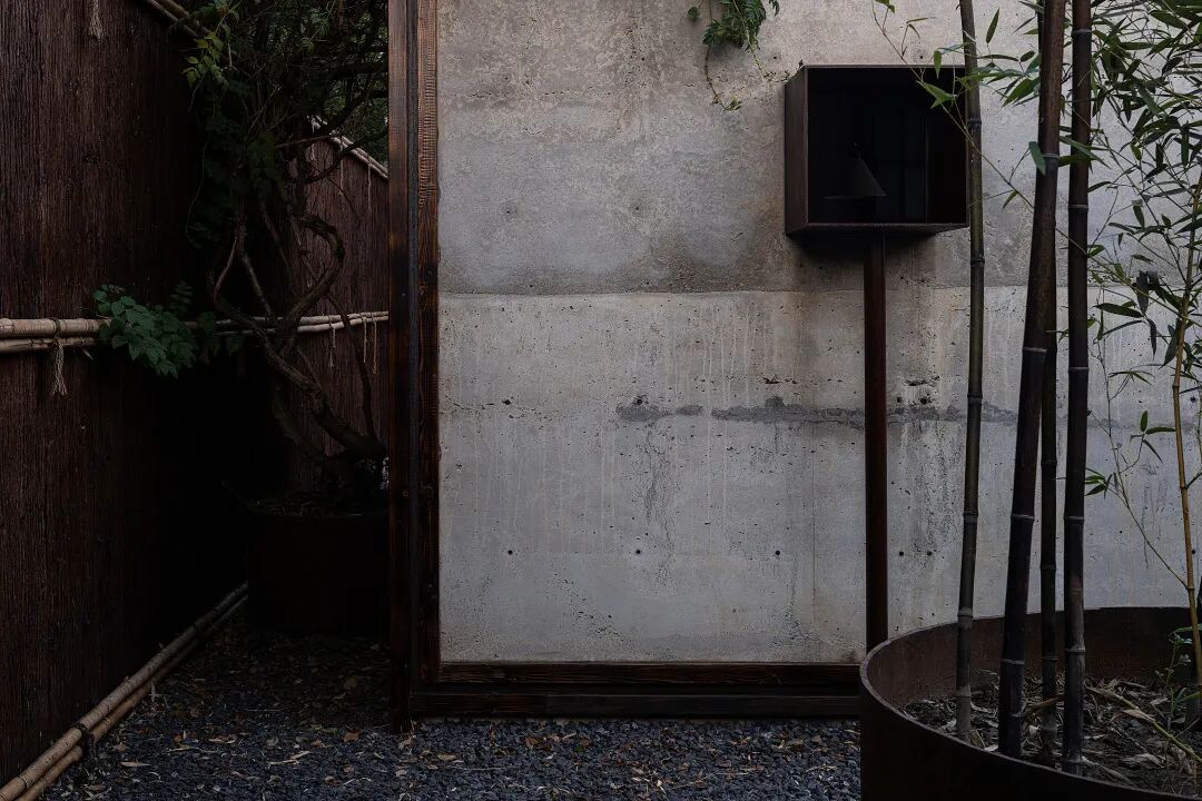 在与茶室对望的户外,设计师梳理出一方青阶绿苔的庭院,有精心种植的草木,也有青松翠柏的盆景,在雨季来临时,手捧一杯温茶临窗听雨,在人与物、人与草木、人与天地的交融中关照自我,求得一方性灵安放之处。