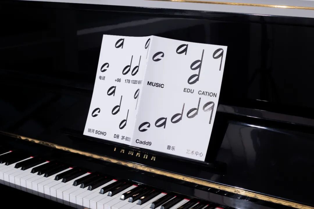 利用音乐中和弦的这一特点,让C A D D 9 五个字符成为了组成Cadd9这个和弦的音节,利用乐谱中音乐符号的律动和标注中字体的节奏间隔,构建出品牌视觉的丰富延展性与统一性。用视觉的语言来表现音乐的节奏感。使整套视觉看起来像是跳动的乐符与乐谱,既能传达信息,又产生音乐的联想,与品牌产生强关联。
