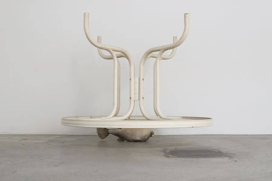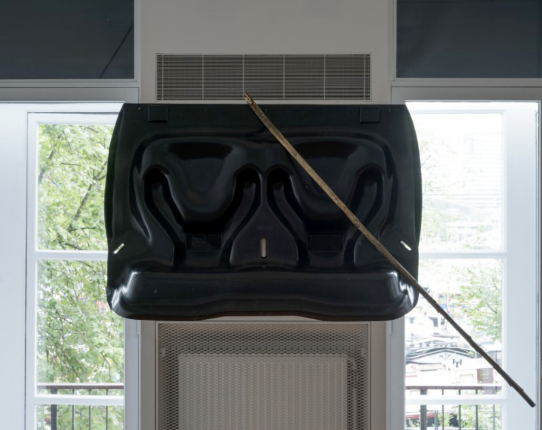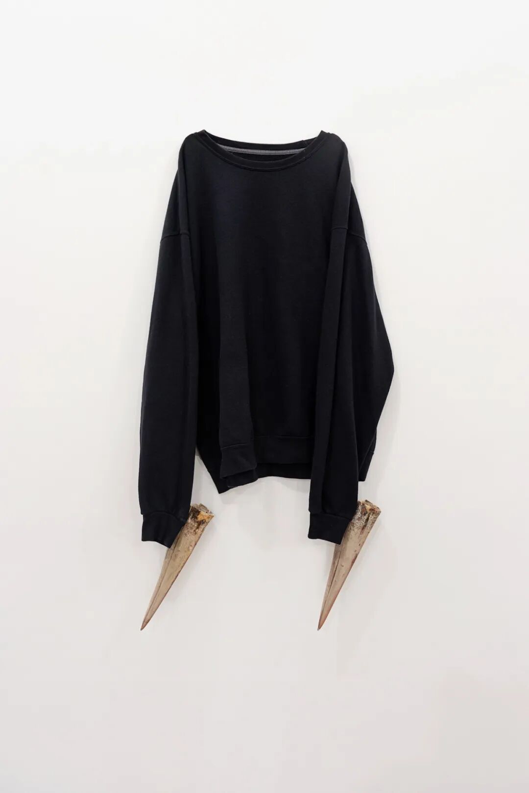 无题, 2019,运动衫、鹳嘴、磁铁、塑料,101 x 52.1 x 89 厘米