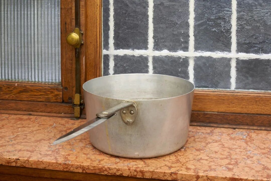 无题,2021 年,锅、刀片,16 x 30.5 x 74 厘米