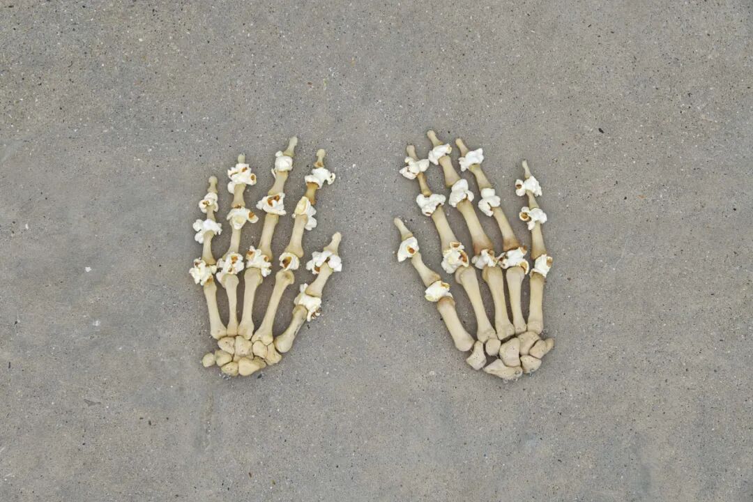 无标题,2019,手骨,爆米花,电线,22 × 28 × 3 厘米
