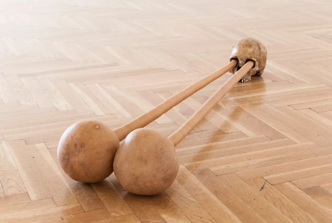无题, 2020,头骨,葫芦,48 1/2 x 10 3/4 x 6 5/8 英寸
