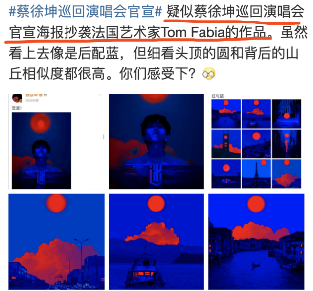 对于蔡徐坤涉嫌袭的争论并非第一次,2021年,也有网友质疑蔡徐坤演唱会海报涉嫌抄袭法国艺术家作品,当时网友争论不一!