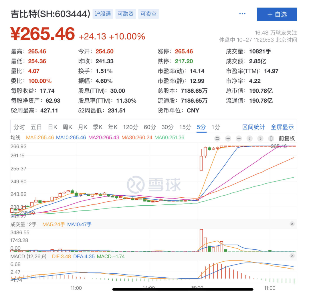 分红公告发布次日,吉比特股价开盘涨停,相关话题也登上微博热搜。