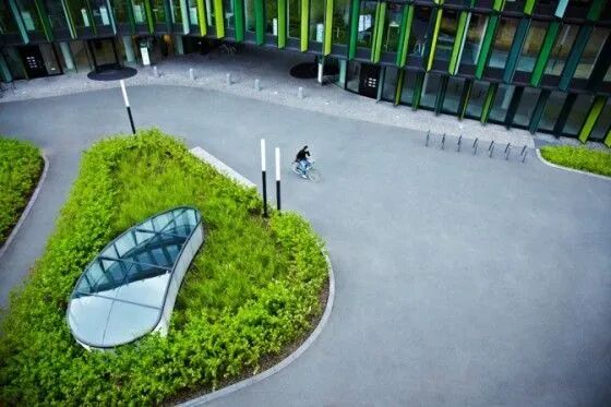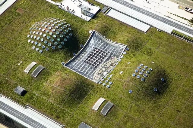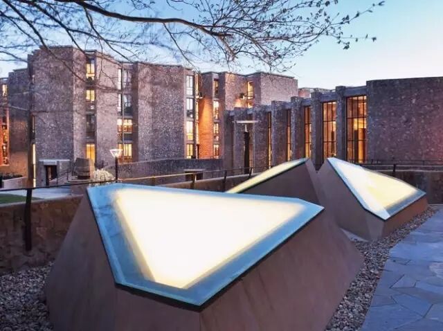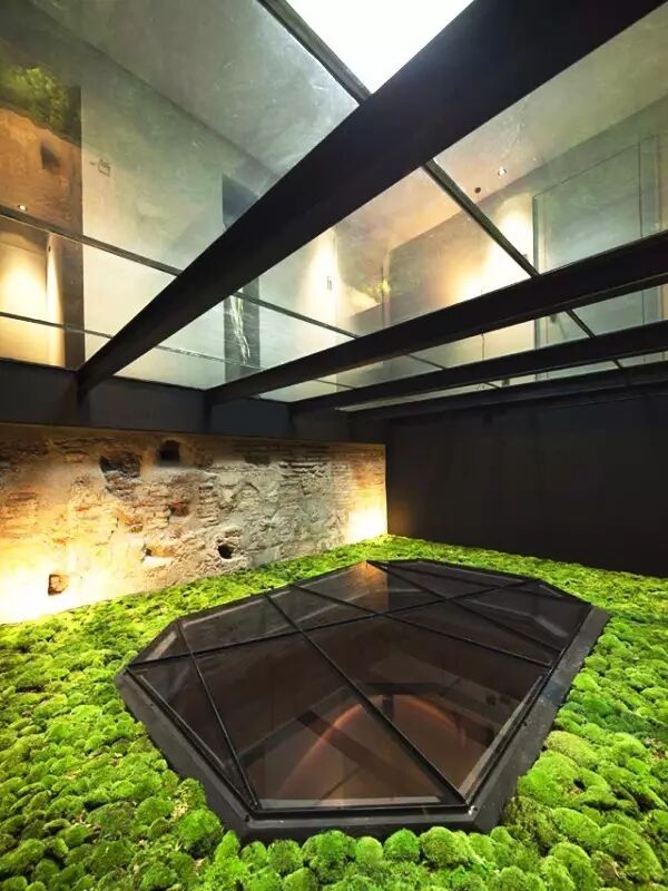 凸起的大地形和采光井建立上下空间的联系,在广场上人们可以从采光井窥视展览而引发兴趣,在展览馆里又可以仰望天空或城市一角。