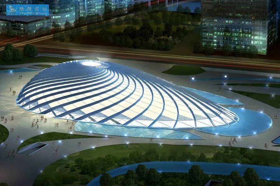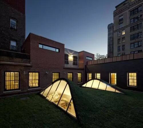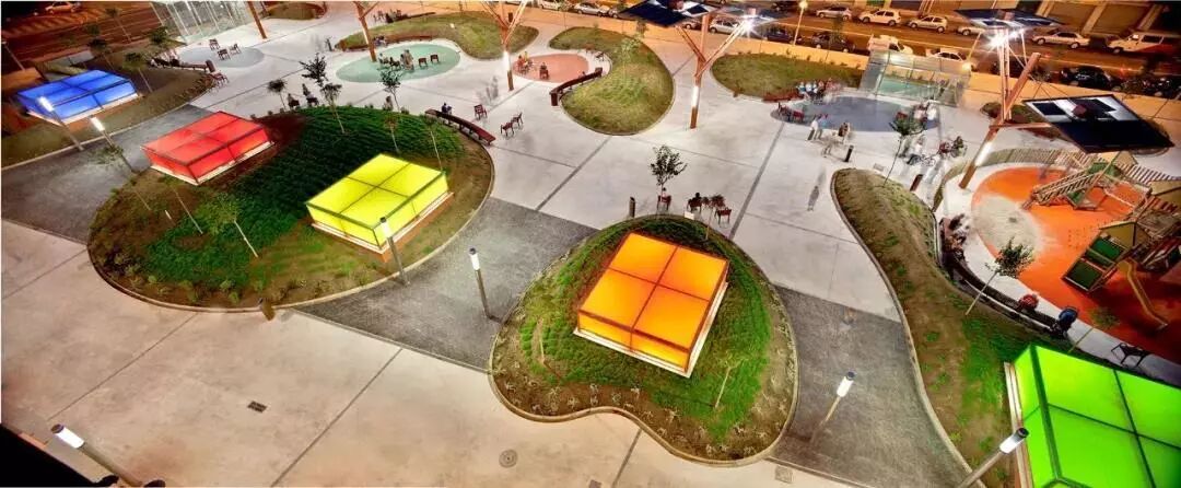 色彩各异的采光井,在夜晚是城市的一大亮点