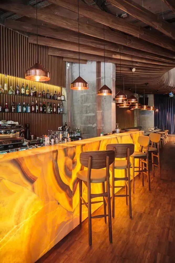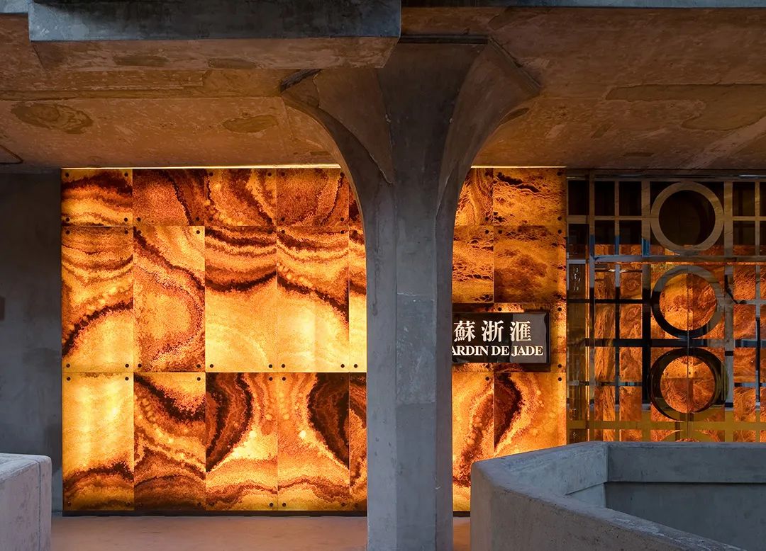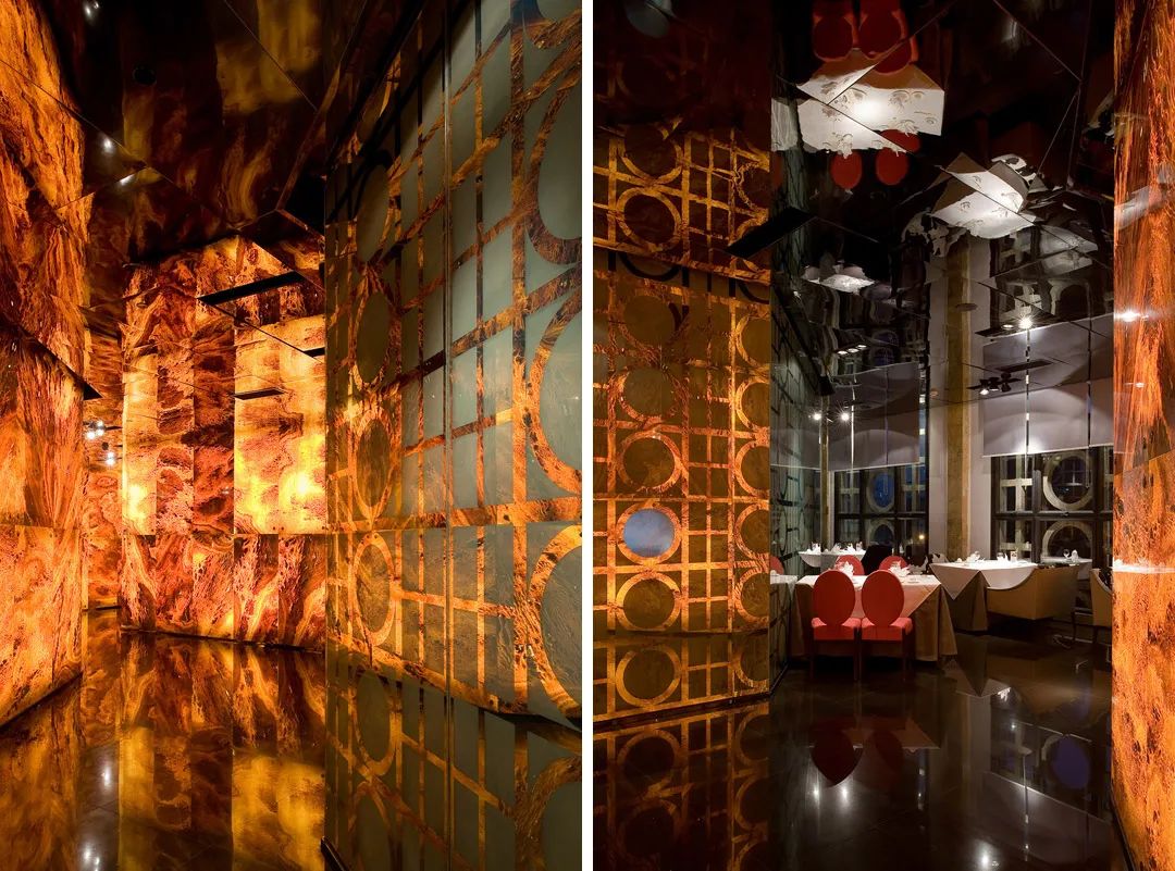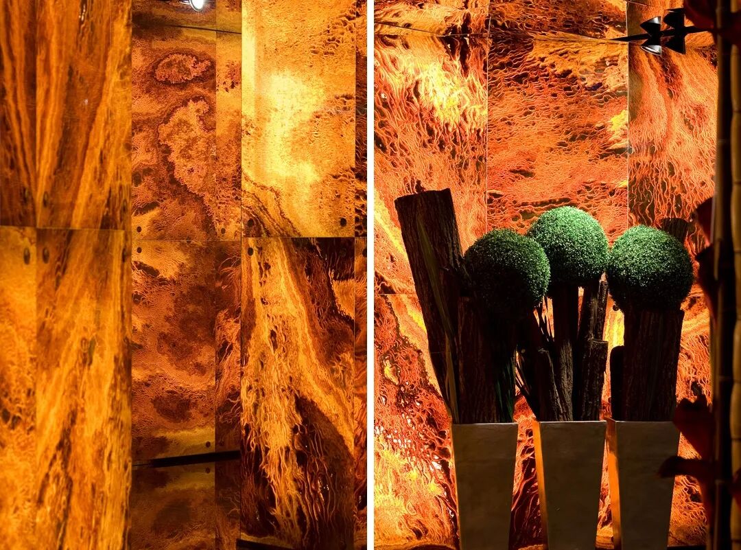 d.借助灯光的透射效果,可产生一种若隐若现,若即若离的梦幻效果,晶莹通透、花纹丰富灵动,既具有天然大理石花纹的典雅豪华,又具有现代艺术风格的品位。