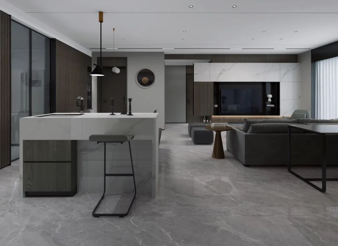 星空岩板系列作为金丝玉玛的高端岩板材料,深切贴合年轻人的时尚潮流的美学追求,广泛应用于现代高端住宅设计。