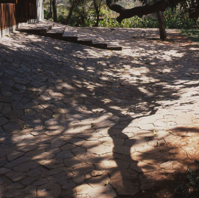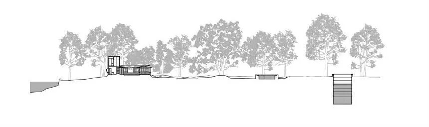 房屋的首层被抬升,位于周围环境的水平高度之上,以防在季风气候雨水频发的时期过多雨水聚集引发灾难。这种对季节的“焦虑”体现在地面铺设的设计中,即在庭院内围绕着房屋铺设一条连续的环型线路,将雨水汇集导流到最近的出口。