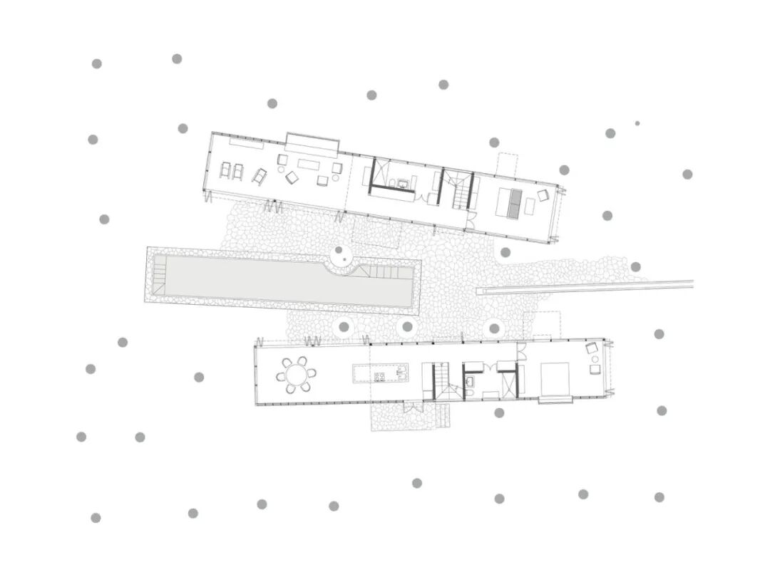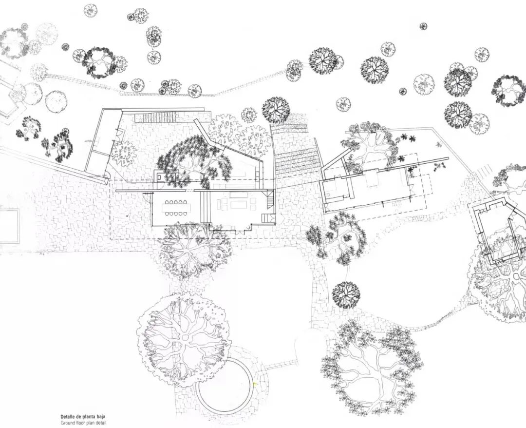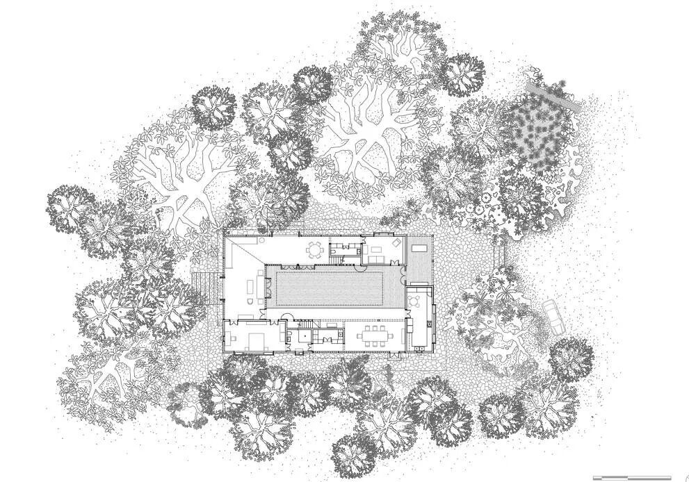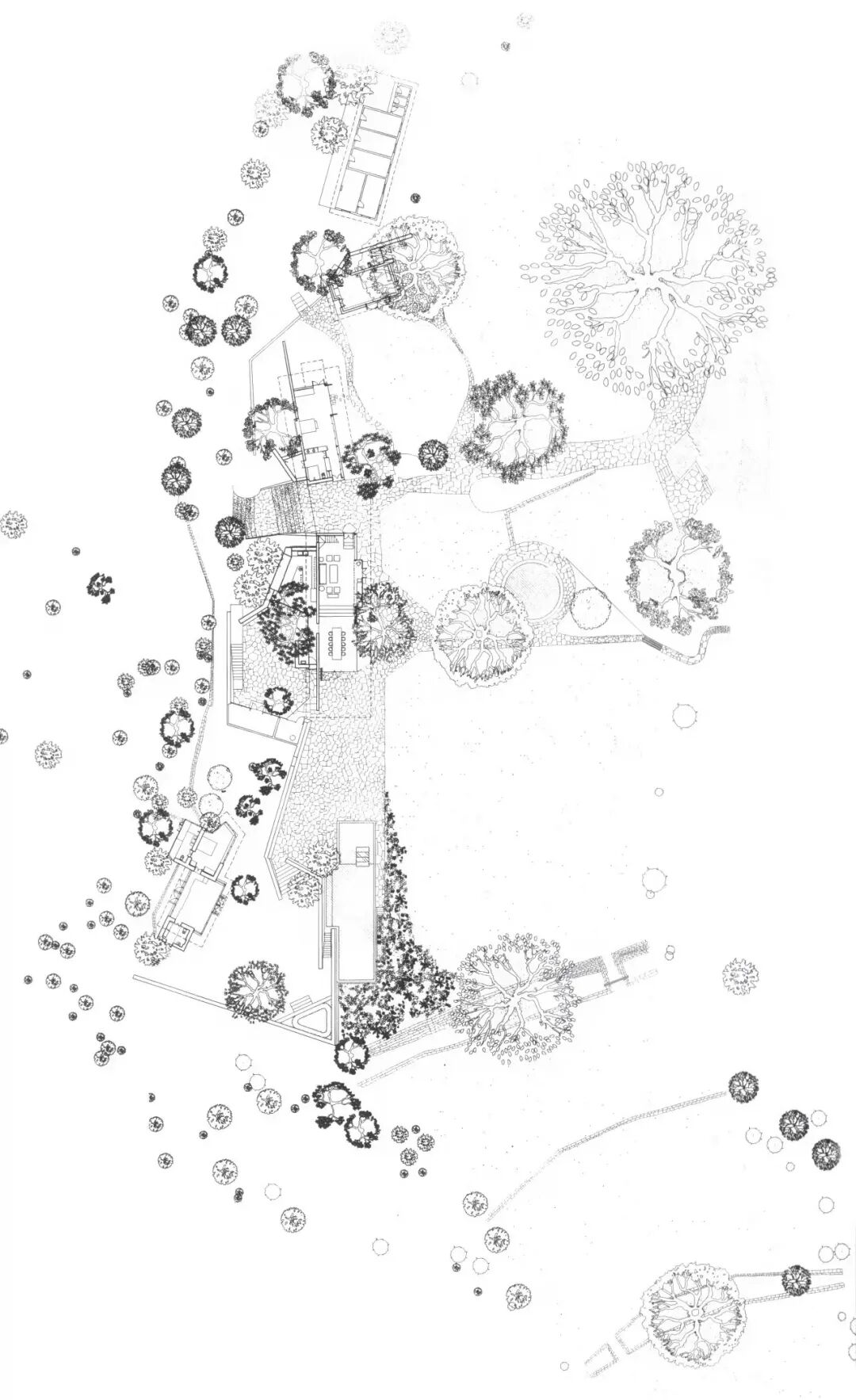 建筑师凭借直觉确定了一块巨大岩石的位置,并预先将它清空。业主母亲将这块岩石当做礼物送给事务所,而它最终被放置在院子前三分之一处,这标志着事务所对该项目整个工作的收尾。