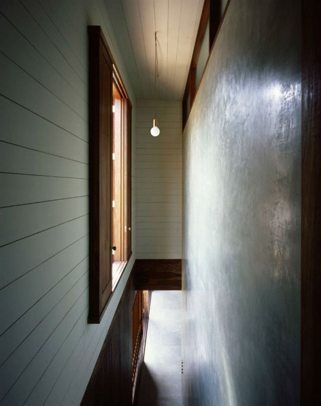 墙壁采用了传统的青瓷色石膏覆面,光滑如皮肤并呈现出中国古代特有的釉面花纹效果。整个建筑像是一个碎片状的竖立陶瓷容器,外包铜材料覆层,带有些许褪色的效果。连续的铜质屋顶平面层形成了该住宅的第二基准面,为可能的利用提供了一个平面。