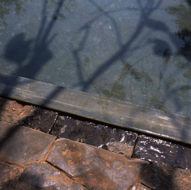 建筑物外部则安装了手工制作的铜质散水及直立锁边铝质房顶;内部表面采用了柚木及印度特有的细赋目蒂有颜色的石灰石。而从当地开采的黑色玄武岩则用来建造房屋的基座、引|水渠以及铺砌池塘周围的地板。