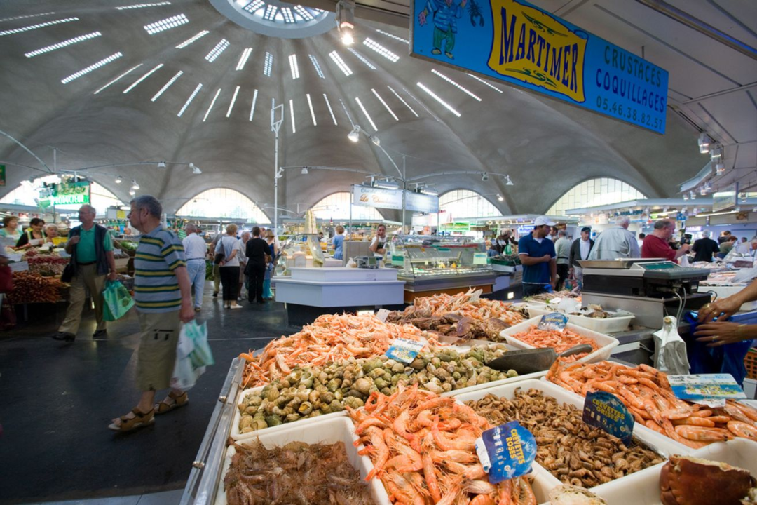 当时最出名的混凝土市场还属Royan的有盖市场,由 Louis Simon、André Morisseau 和工程师 René Sarger于1955年完成。它标志着一条延伸至海滩的仪式路线的高潮,犹如一座蛤壳形的食物神殿。它是一个八厘米厚的钢筋混凝土圆形外壳,位于十三个外围支撑点上,没有任何内部支柱。它的直径为52.40米,中心高度为10.50米。