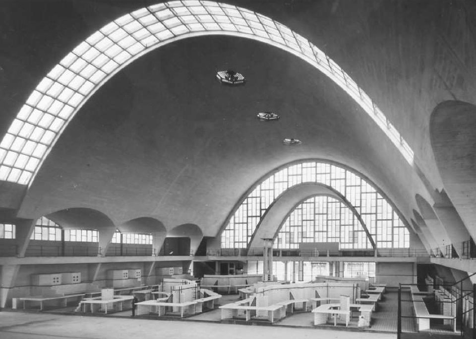 然后,从 1920 年代后期开始,出现了混凝土建筑的爆炸式增长:位于法国兰斯的les Halles du Boulingrin有一个只有 70 毫米厚的奇妙抛物线拱顶,而在博洛尼亚,皮埃尔·奈尔维设计的混凝土屋顶市场也集厚重与轻盈为一体。