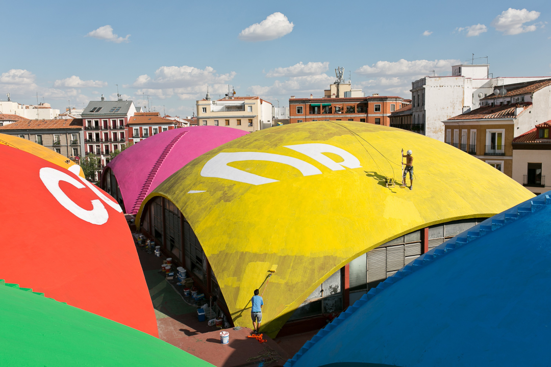 相比于英国,西班牙的市场还比较幸运,仍然可以见到市井文化和城市更新如影随形的状态。比如马德里的 Mercado de la Cebada,它的彩虹碟形圆顶平静地盘旋在酒吧、小吃店和老式摊位的喧闹混战之上。巴塞罗那圣卡塔琳娜市场的有趣顶棚下依然可以体验到朝气蓬勃的市场喧嚣。市场的微更新或许比大张旗鼓的改建和自欺欺人的掏空更具魅力。