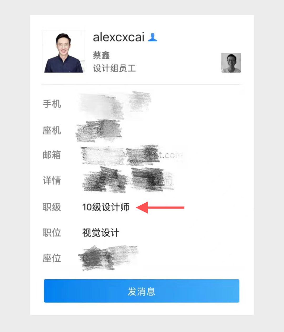 到了中期,技能差不多已经能跟得上了,这时候就希望能够得到更多的荣誉了,比如晋级答辩,从刚进入时候的8级,用两年的时间升到10级: