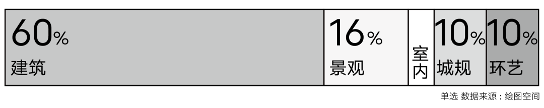 本次问卷调查的调查对象——建筑相关专业22届毕业生。在这其中,建筑生毫无疑问依旧是主力军,其占比高达60%;而景观、室内,城规,环艺专业的调查样本相对少,参与人数占比在10%及以下。