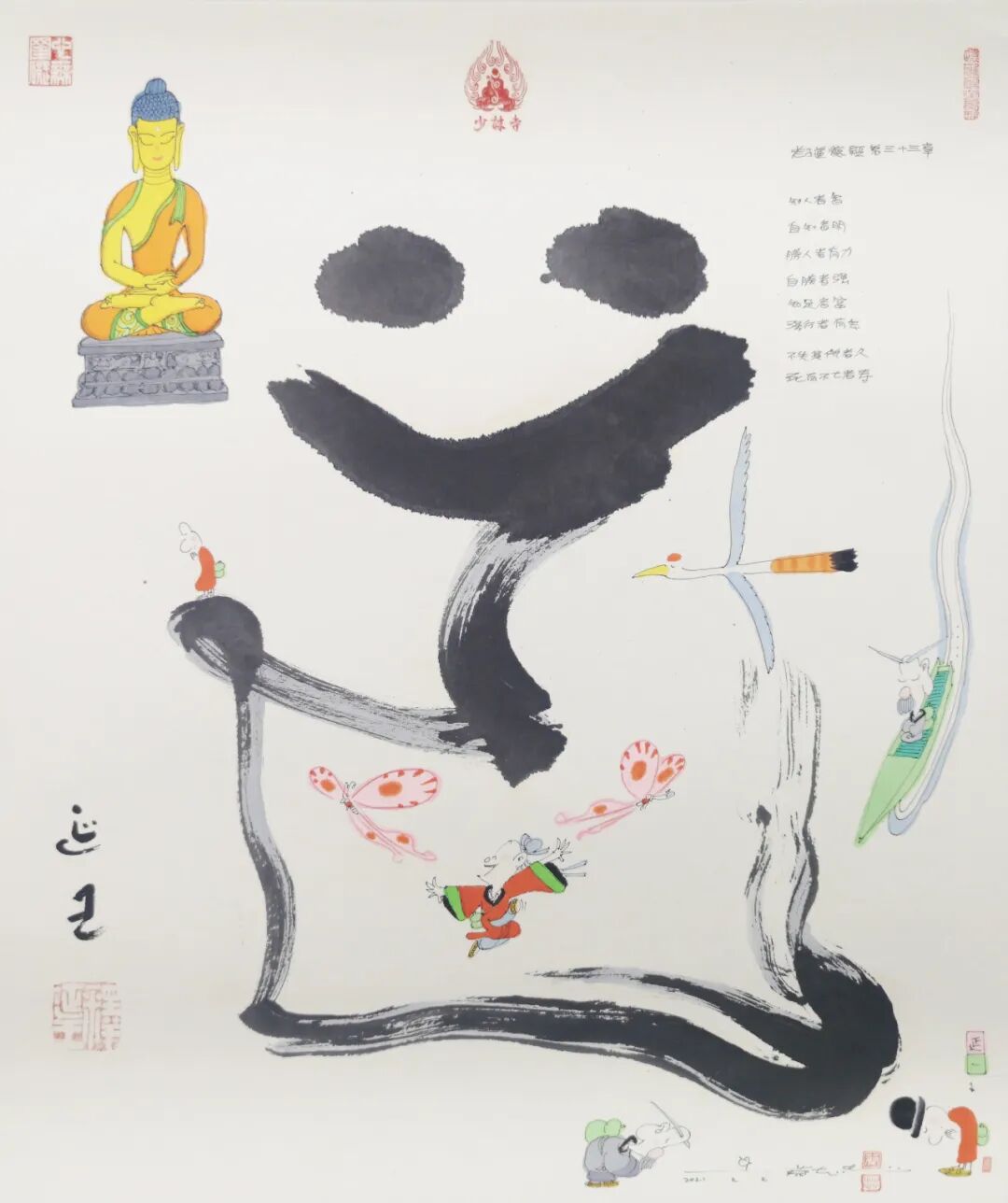 套用一段宫崎骏说过的话:“我如果能让一个孩子拥有一部令他无法忘怀的作品,就是一种很幸福的体验,因此我将努力不懈地继续完成我的工作。”对于一生从事动漫行业的蔡志忠,他认为“有幸能活在快速变革的时代,有机会能跟大家一起为动漫产业的未来尽一份心力,光想到这里,我的内心就充满使命感!我将努力不懈,期待有生之年能完成使命。”(作品图片来源:三尚美术馆)