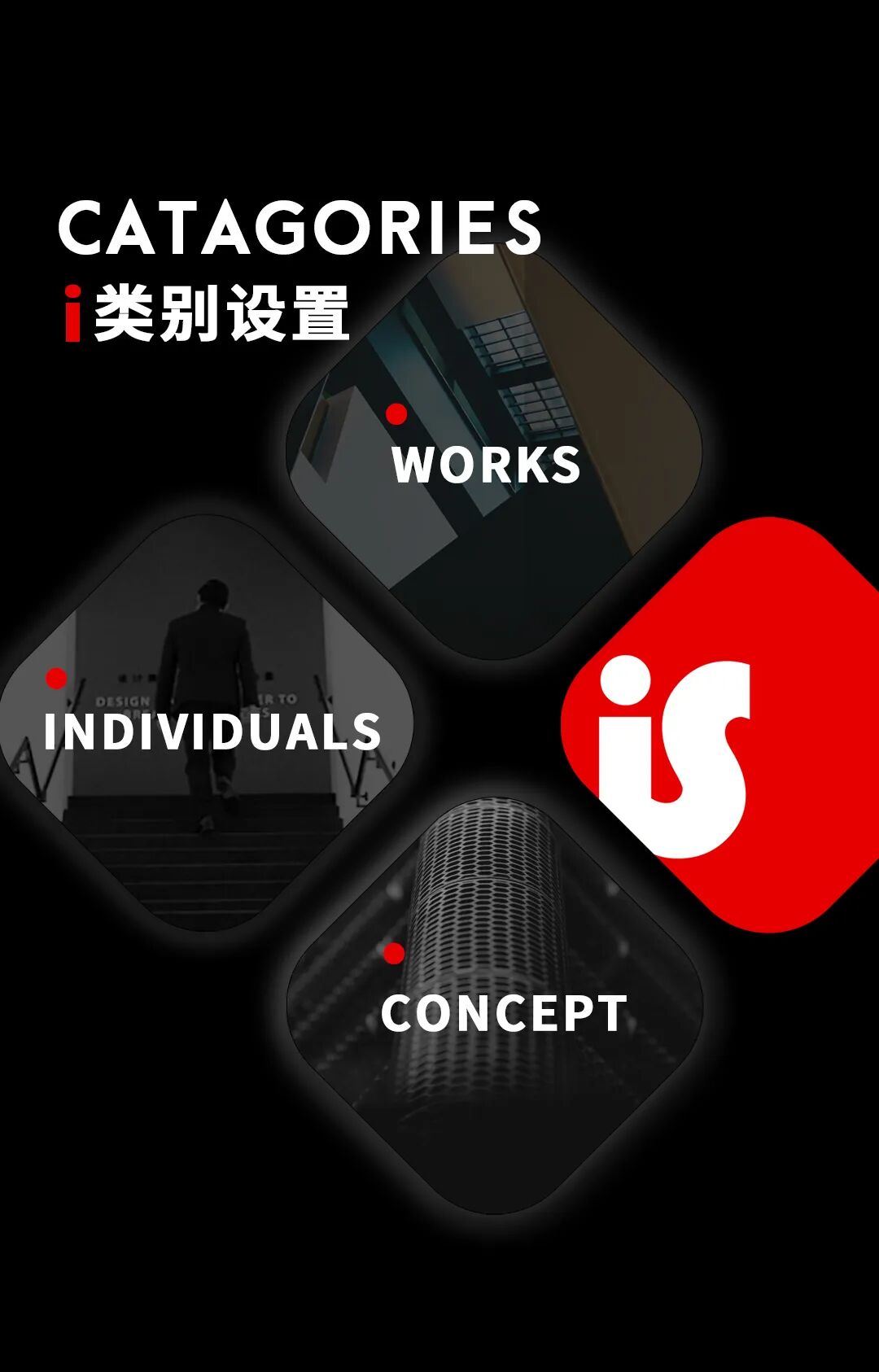 The awards program is organized under various categories separated into three disciplines: works, individuals, and concepts.