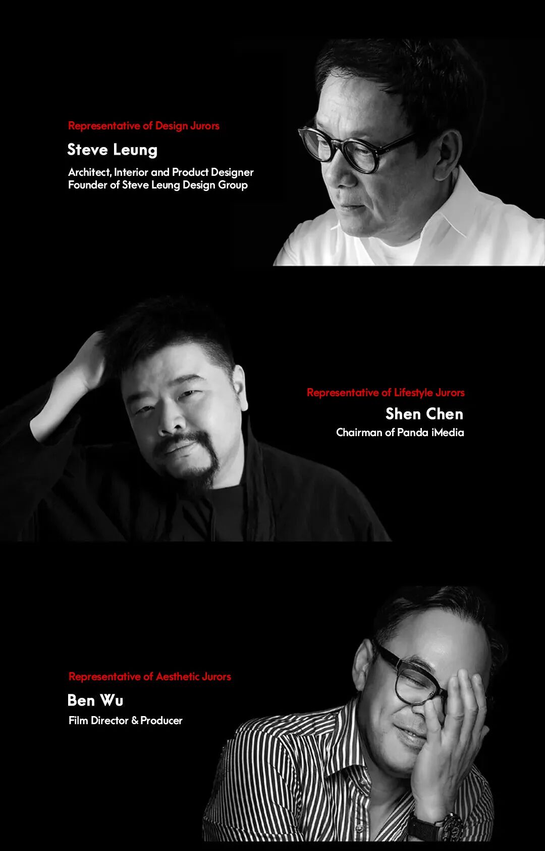 The composition of the jury panel is divided into three groups: Design (Professionals in Design and AI Fields), Lifestyle (Editors, Celebrities, End-Users, Company Owners), Aesthetic ( Professionals in fine arts, fashion and visual ).