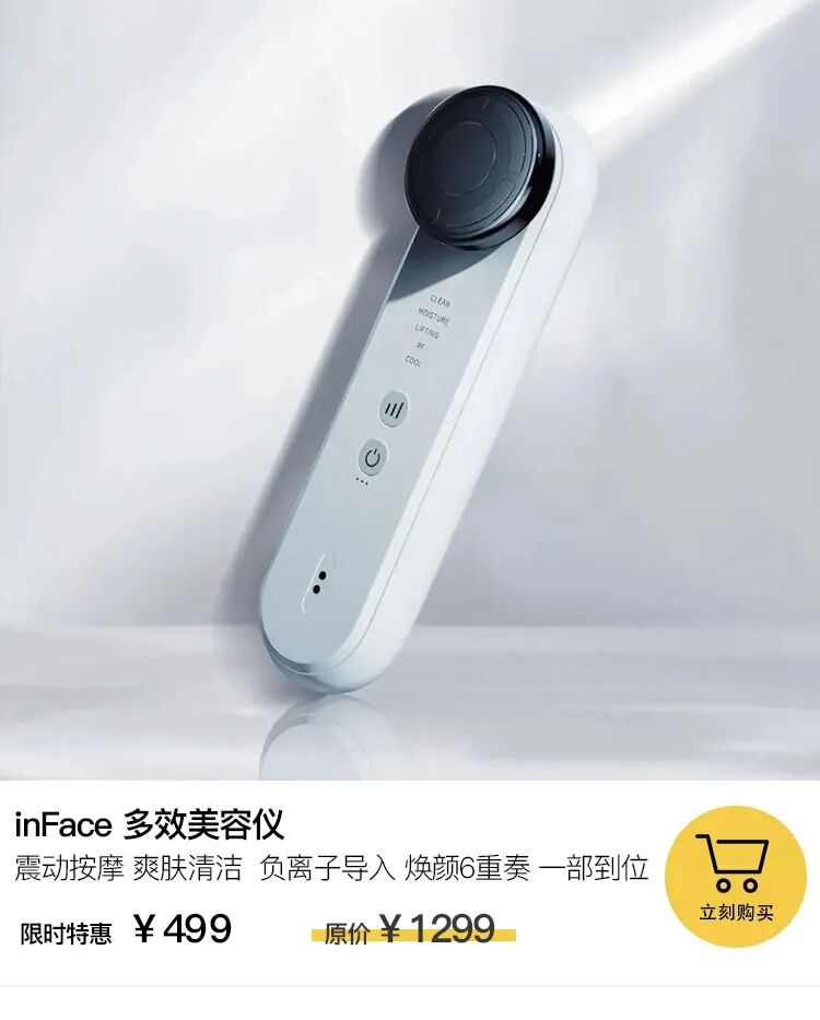 「inFace多效射频美容仪」三大功能,下班后用它放松、护理肌肤,简直是贵妇般的享受。 ① 清洁:通过热敷和红光打开毛孔,利用正离子的导出,皮肤深层的些粉尘、污垢; ② 提拉:采用先进的间歇性脉冲技术,通过按摩刺激肌肉群,活化细胞,让皮肤微微抖动; ③ 淡纹:「射频」技术,在100万赫兹频率的作用下,真皮层的成纤维细胞产生即刻收缩,在重新恢复螺旋排列的同时,刺激产生新的胶原蛋白,只使用7天,肌肤就会由内而外得到改善。 每次花2个小时充满电,按每周2-3的推荐使用频率,两周充一次电也完全够用。 美容仪的护理头是用镀钛金制成的,这种心脏支架同款材质,温和亲肤,一键切换理想的使用模式后,就能分分钟get在美容院做spa般的享受!