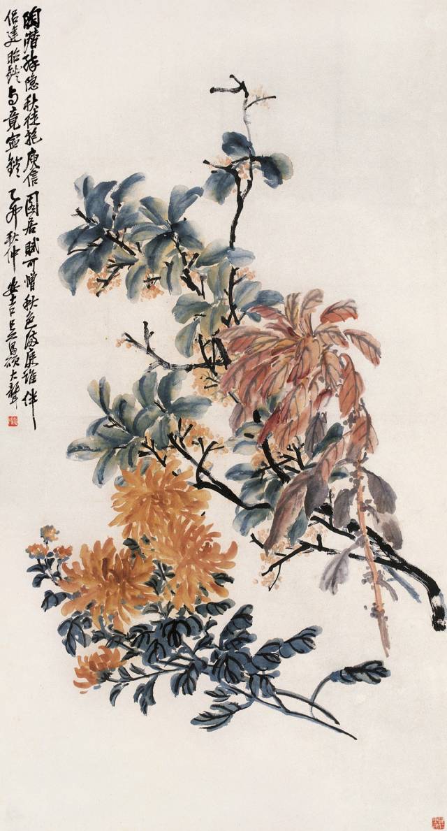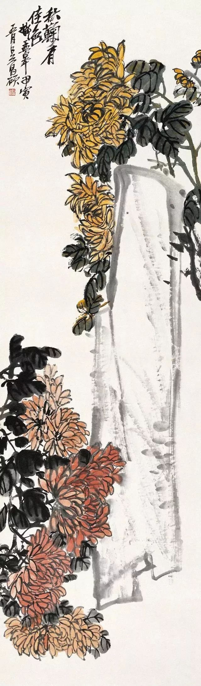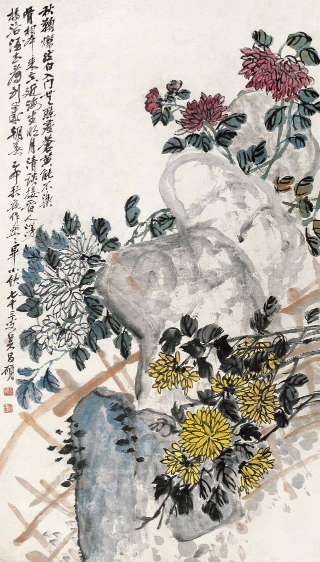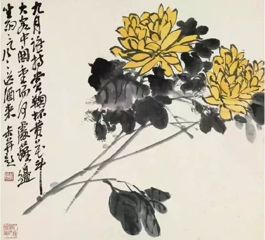 吴昌硕、齐白石都喜爱画菊,齐白石在他的题画诗中写道: