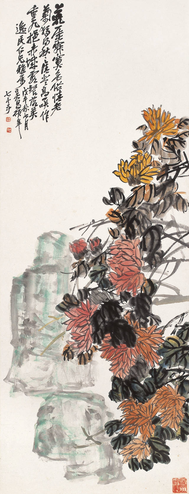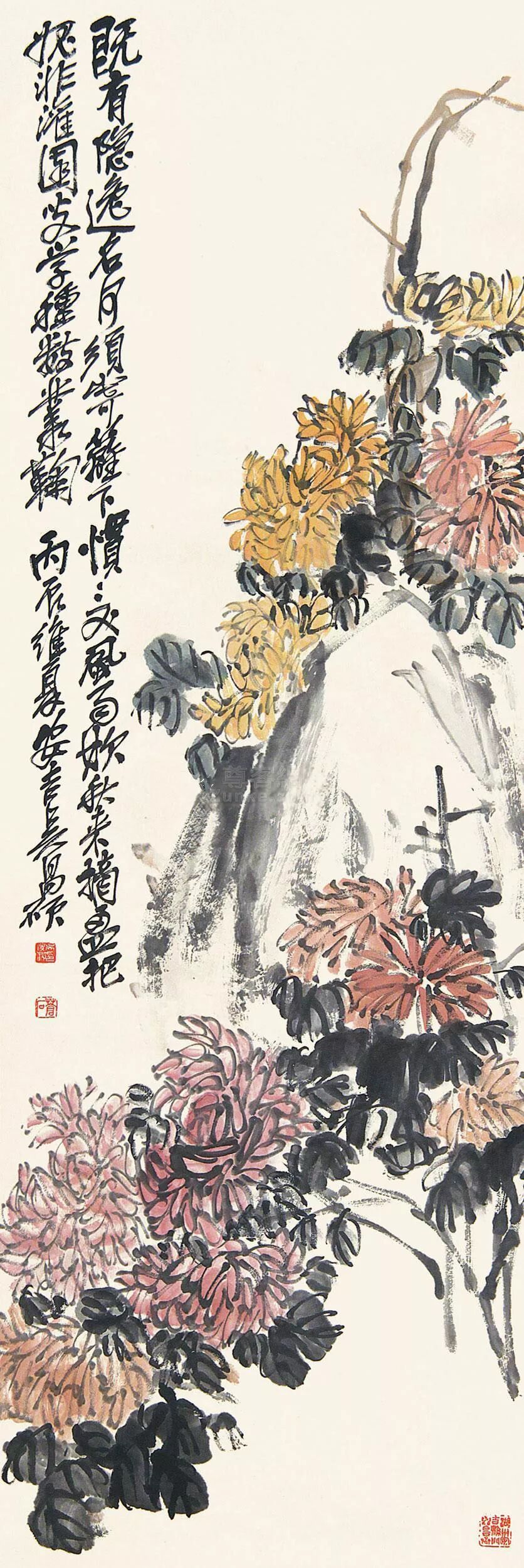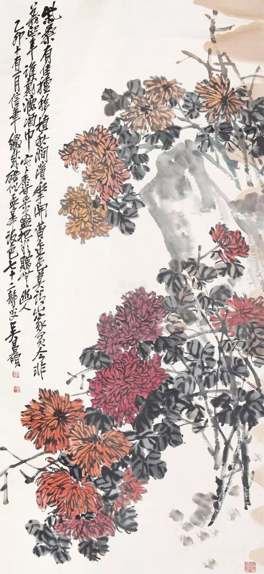 吴昌硕、齐白石都喜爱画菊,齐白石在他的题画诗中写道: