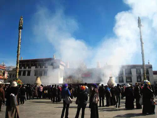 大昭寺外身着藏装的藏族群众,图片来源@网络
