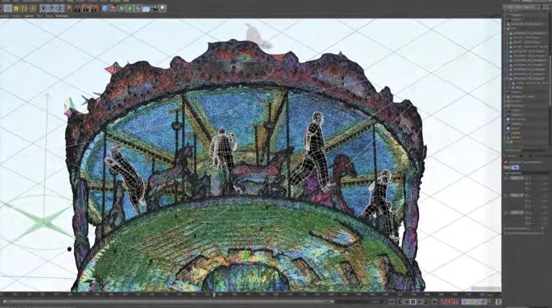 荔枝公园的概念最早来源于福建莆田荔枝公园。原本用于 公众休闲娱乐的公共设施变成了性交易场所,人们在荔枝 树下晃动,熟透的荔枝被摇了下来。人们在此获得欢愉的 方式发生了改变 。然而在这件作品中,软件没有跟随故事 的发展而发展,软件中的模型⻆色在旋转木⻢的训练下, 在摇摇⻋的训练下,已经可以抵御高速的旋转。并开始向 无垠的软件深处,外太空行进。