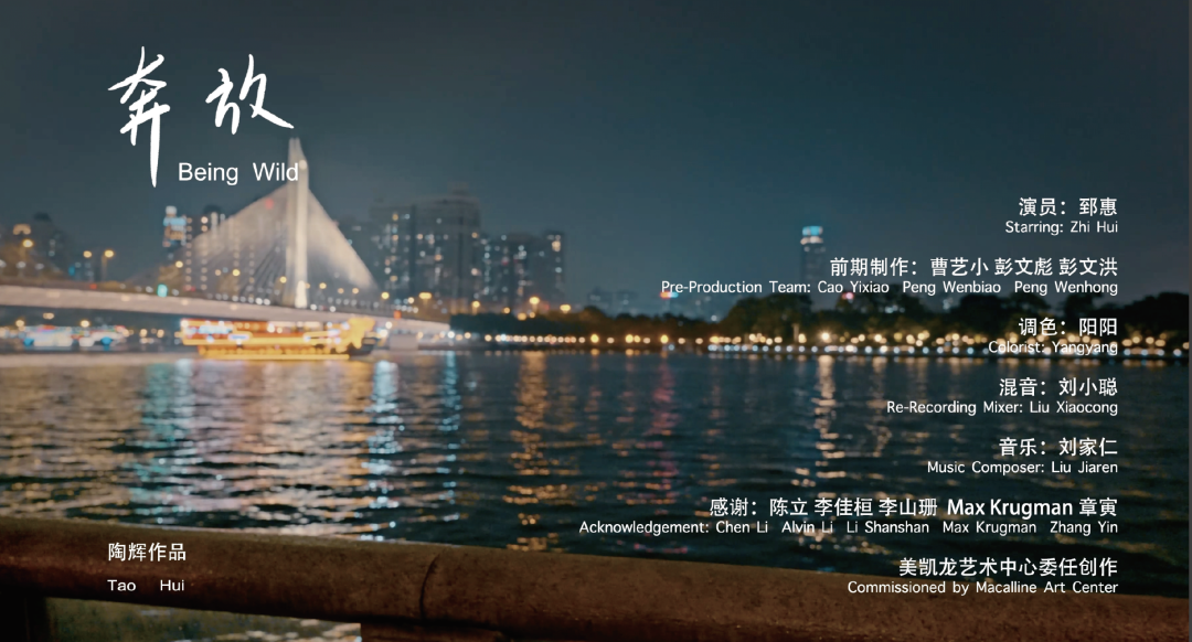在《奔放》中,一位年轻女性扮演了故事主人公及叙述者的角色,踩着滑轮鞋在大学城、旧纸厂、影视城及中央商业区等多个不同场址中徜徉。主人公在空荡的街道上唱起1980年代台湾歌手邰肇玫及王海玲的歌,将歌词与关于当下环境的叙述编织合一,以陶辉的标志性风格直接面向观众讲述了抒发了自由而惆怅的情感经验。