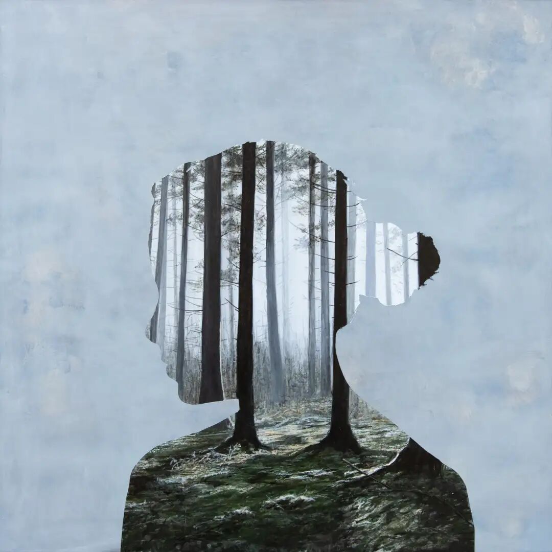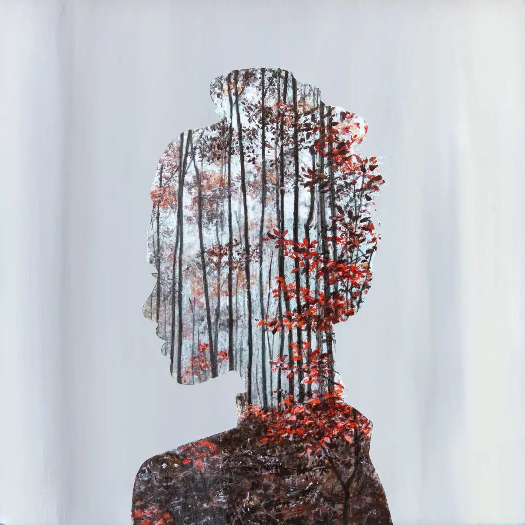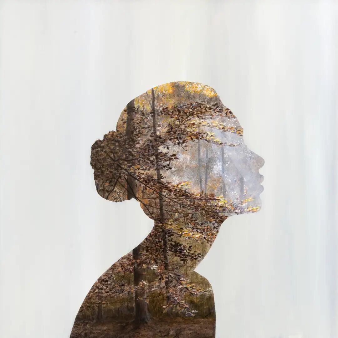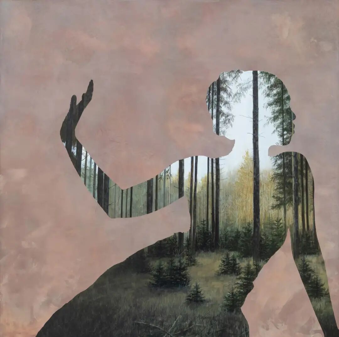 她的画作与传统绘画不同,仔细观察会发现画面中有两个部分,中性色调的可见笔触构成了绘画的背景,前景是人物的剪影,后景则是成片的植物森林。梅根·阿琳用巧妙的构思,描绘了人与自然的关系,引起每一个人的反思,也勾起了很多人对儿时的记忆。你是否还记得,儿时在奶奶家度过的夏天,家门后面的小树林里,各种野生的小花小草,蝴蝶在花丛中翻飞......