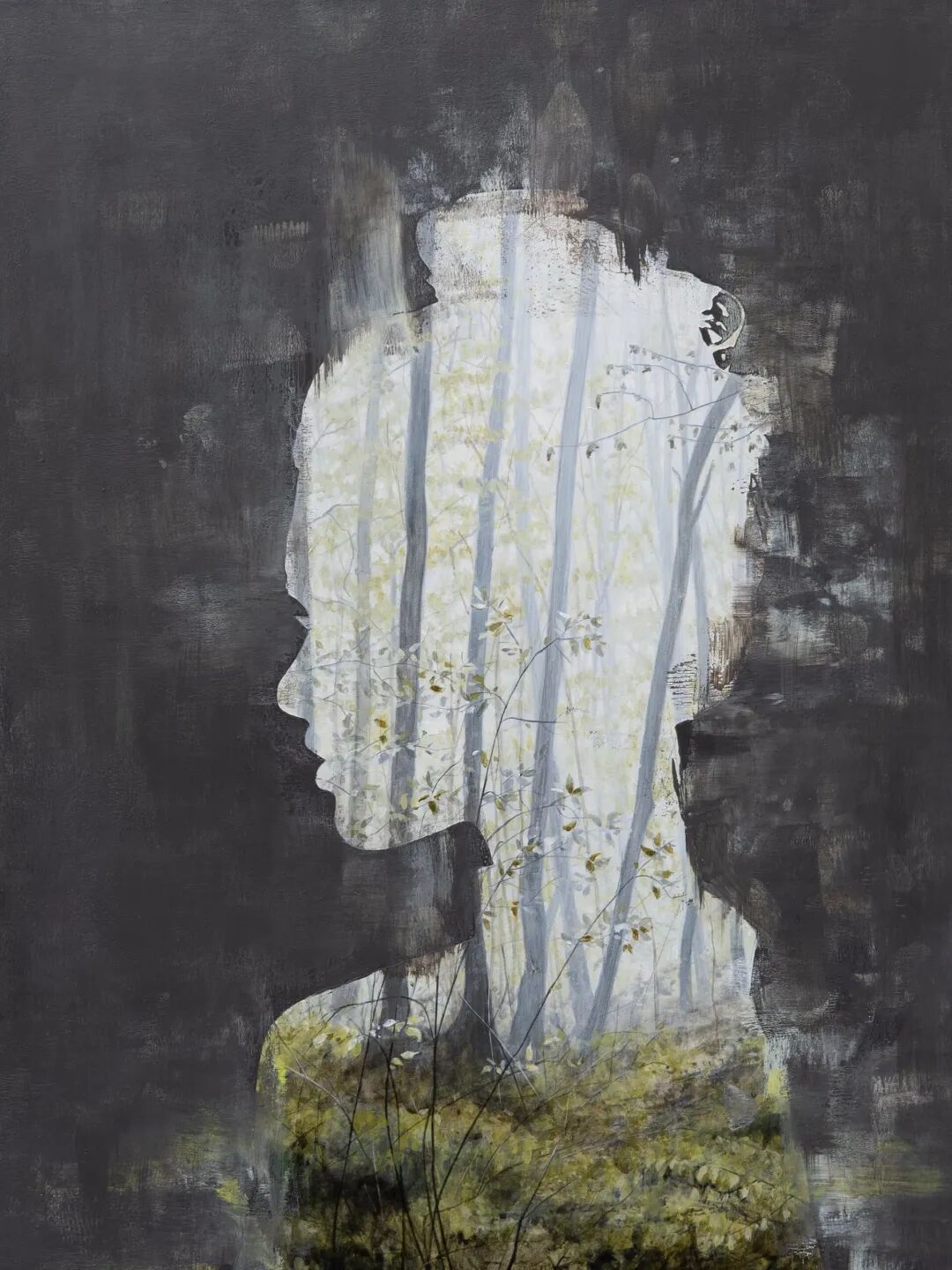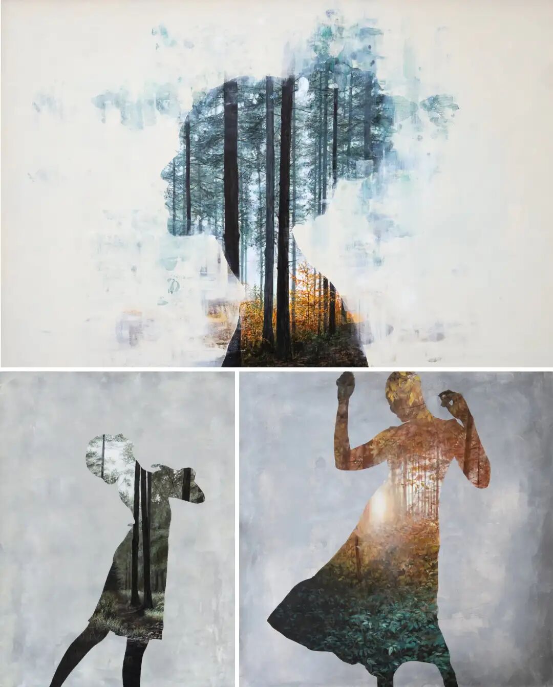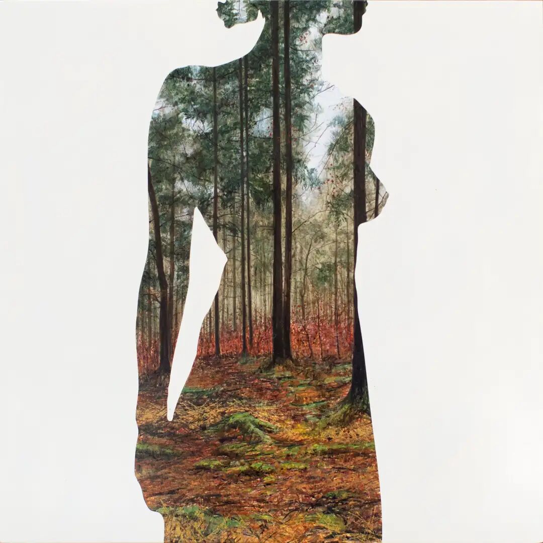 她的画作与传统绘画不同,仔细观察会发现画面中有两个部分,中性色调的可见笔触构成了绘画的背景,前景是人物的剪影,后景则是成片的植物森林。梅根·阿琳用巧妙的构思,描绘了人与自然的关系,引起每一个人的反思,也勾起了很多人对儿时的记忆。你是否还记得,儿时在奶奶家度过的夏天,家门后面的小树林里,各种野生的小花小草,蝴蝶在花丛中翻飞......