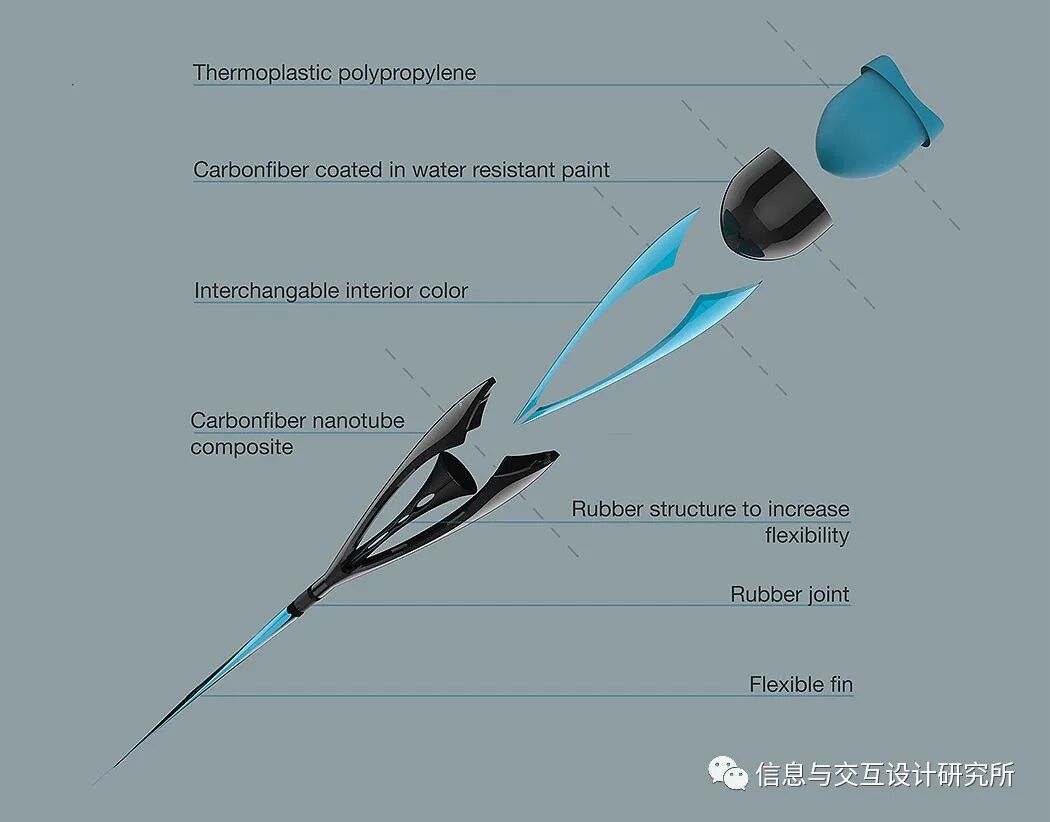 这条小美人鱼的尾巴其实是设计师Alberto Esses为腿部残疾的人士游泳设计的假肢。它采用轻质、强力的碳纤维、橡胶和热塑性聚丙烯材料混合制成,外形采用流线型设计,有利于在水中减少阻力。真空接口设计,可以牢固和安全地附着于人的肢体。有了它,残疾人也能像正常人一样游泳了!