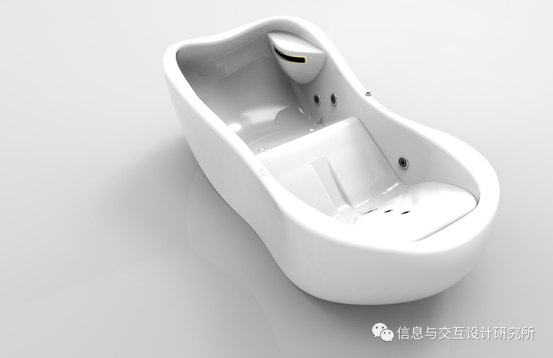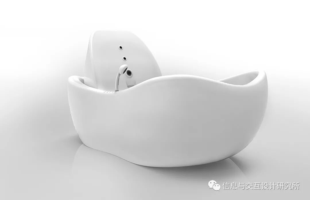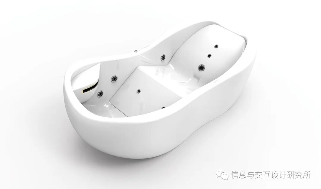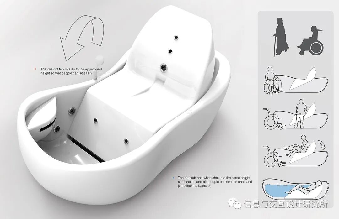 一款专为残疾人推出的浴盆,设计采用了跷跷板原理:坐在轮椅上的人首先需要把双脚放到浴盆里,然后抓住浴盆上的扶手,滑到浴盆座位上,随着水位的不断上升,浴盆的另一端就会下降,最后浴盆保持水平位置。