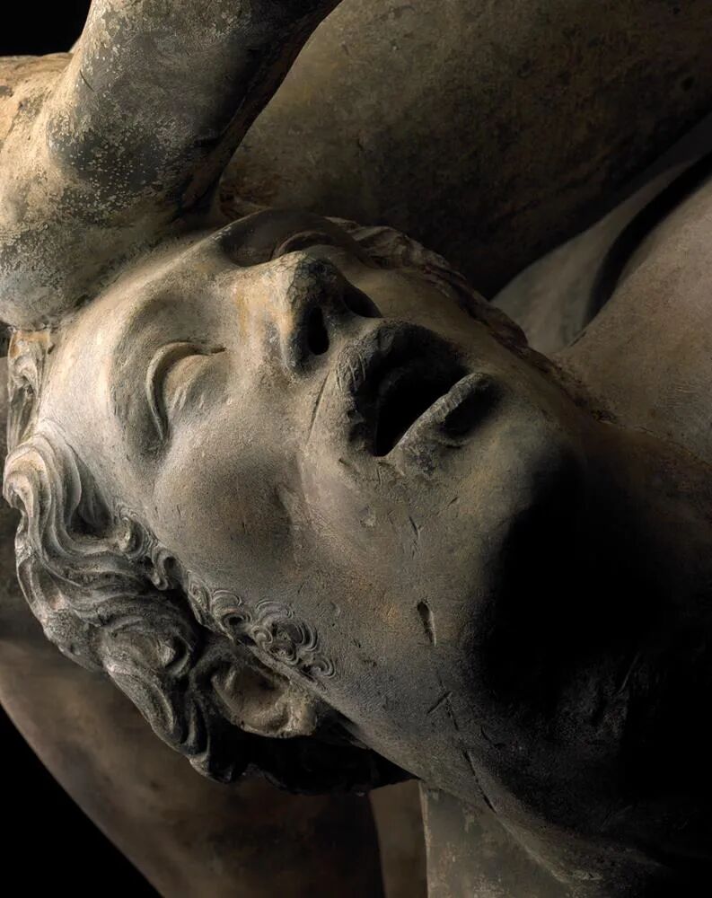 参孙是《圣经》中的大力士,曾一个人打败了上千名来犯的非利士人。这个雕像的造型是参孙把一个非利士人压在双腿胯下,左手揪住他的头发,右手举起一把刀正要砍下。