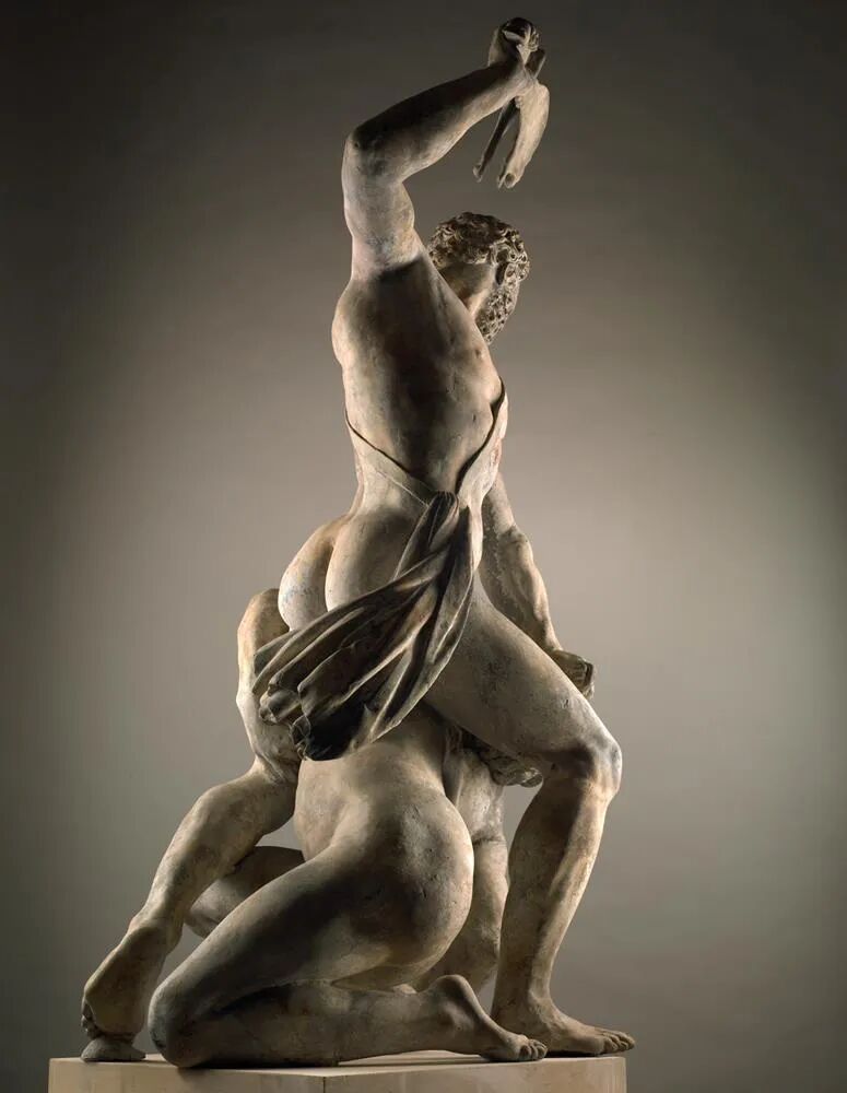 每天两分钟,赏雕塑,听艺术,大家好!今天给大家介绍由16世纪意大利文艺复兴晚期著名风格主义雕塑家詹博洛尼亚创作的大理石雕像《参孙杀死非利士人》,收藏于英国伦敦维多利亚与阿尔伯特博物馆。