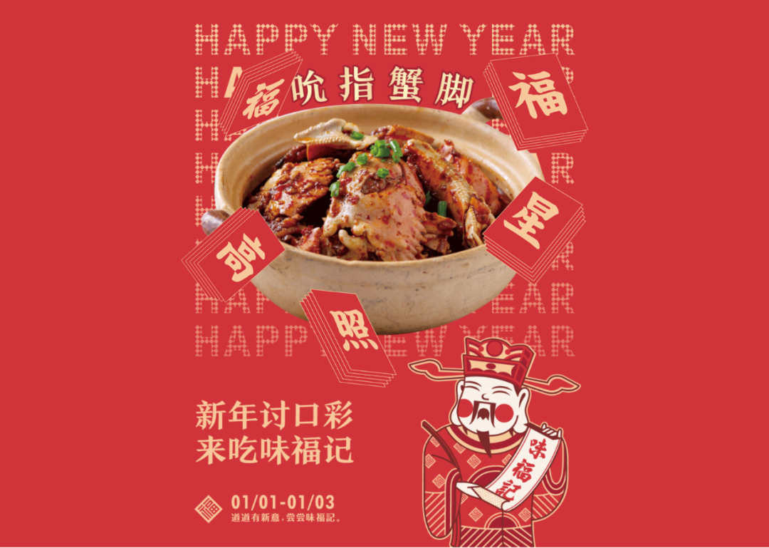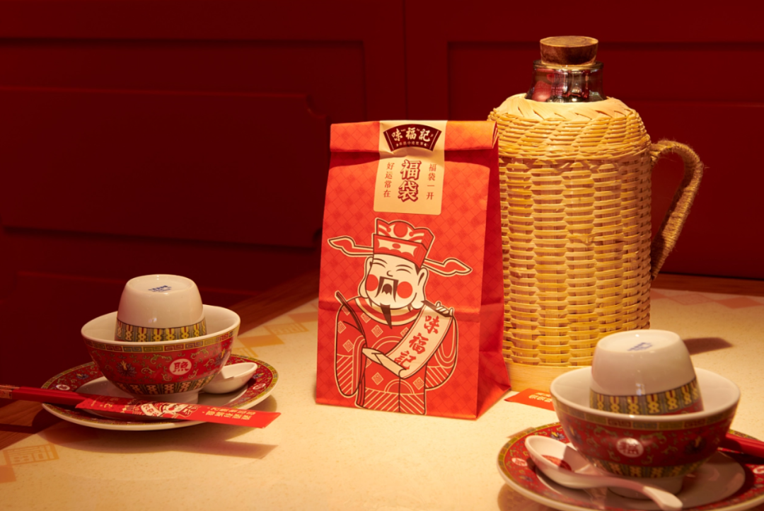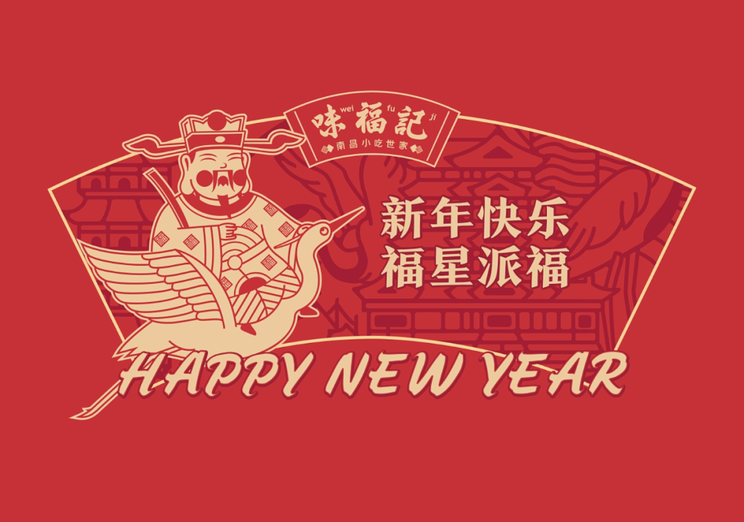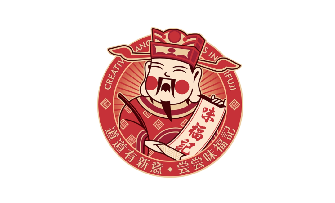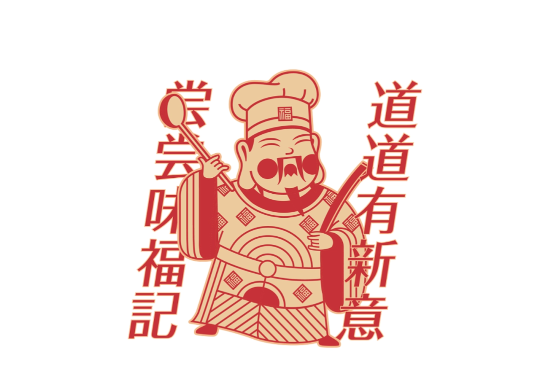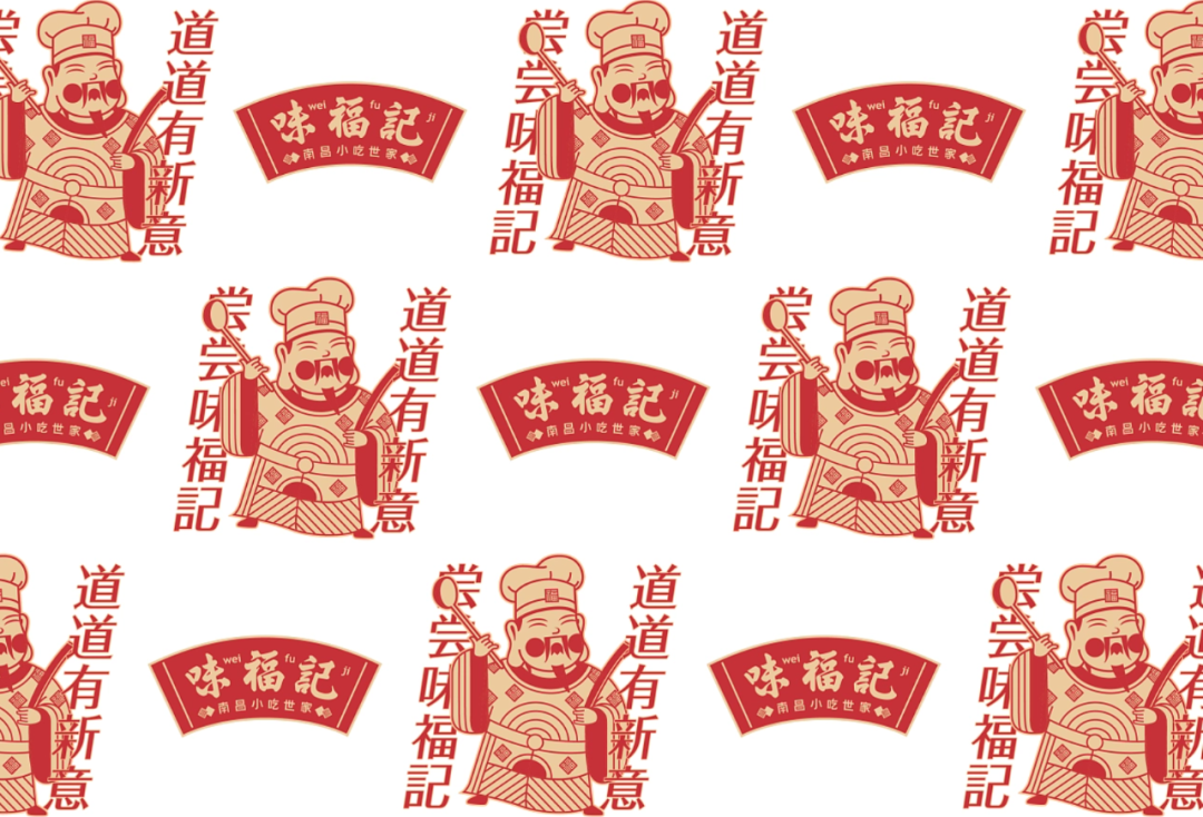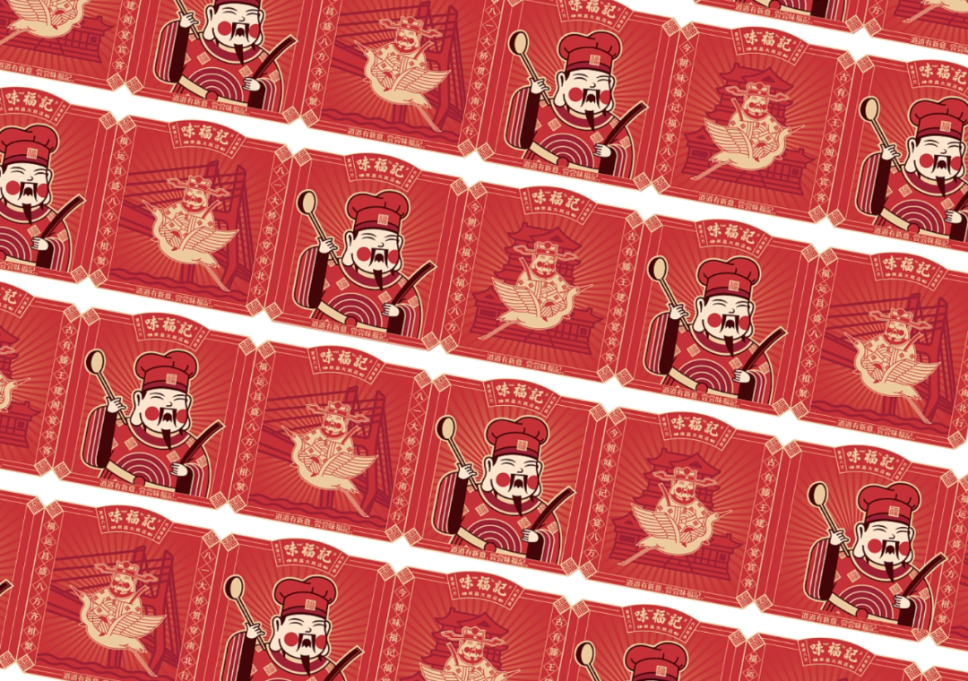 中国人庆祝节日要贴福,借力中国传统习俗“贴福”的文化能量包,打造味福记品牌纹样识别。